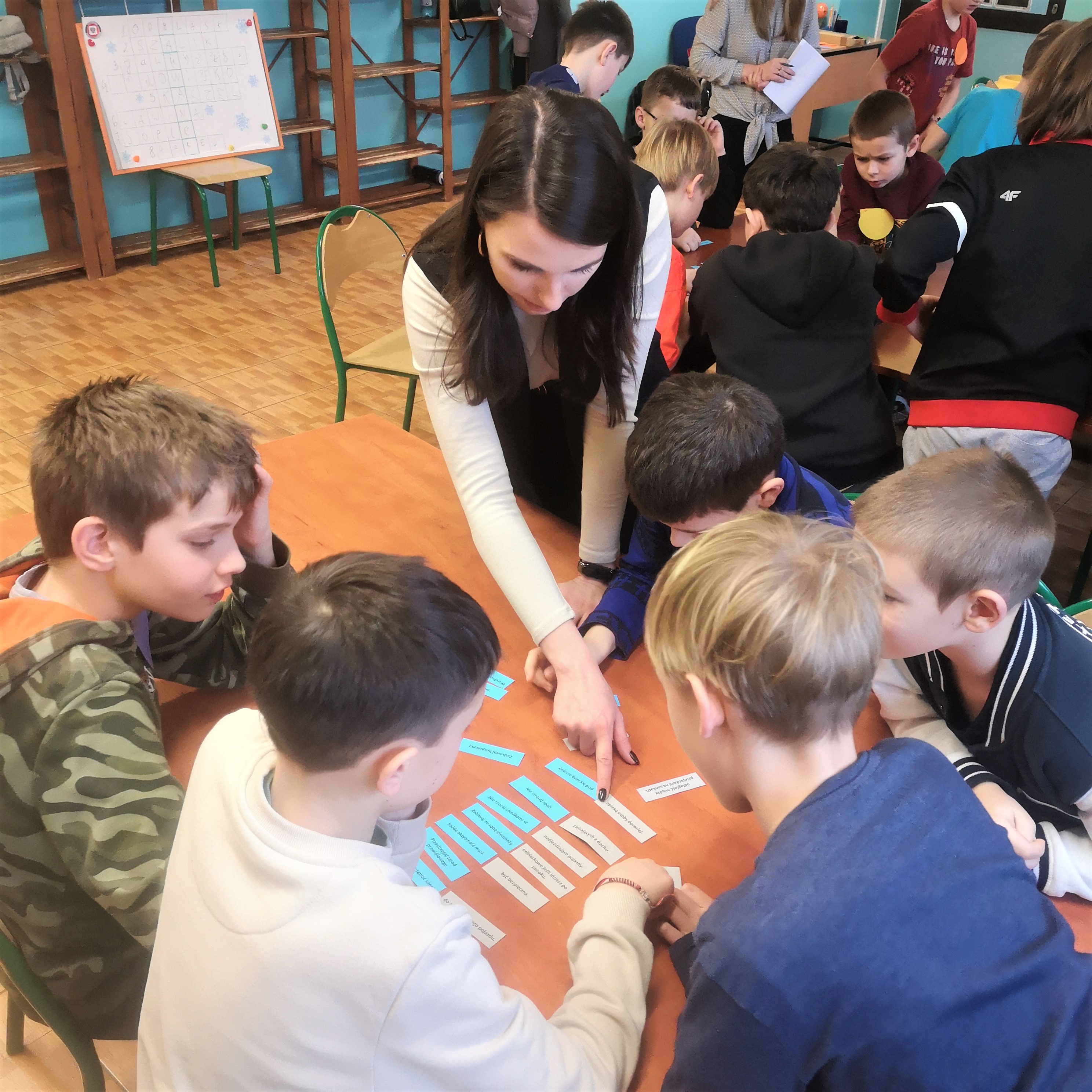 Podczas zajęć przypomniano dzieciom podstawowe zasady bezpiecznego wypoczynku zimowego, ważne telefony alarmowe, zasady higieny oraz zasady bezpiecznego korzystania z internetu. Uczniowie z dużym zaangażowaniem rozwiązywali m.in. rebusy, krzyżówki i quizy, odpowiadali na zadawane pytania, dzielili się swoimi doświadczeniami.