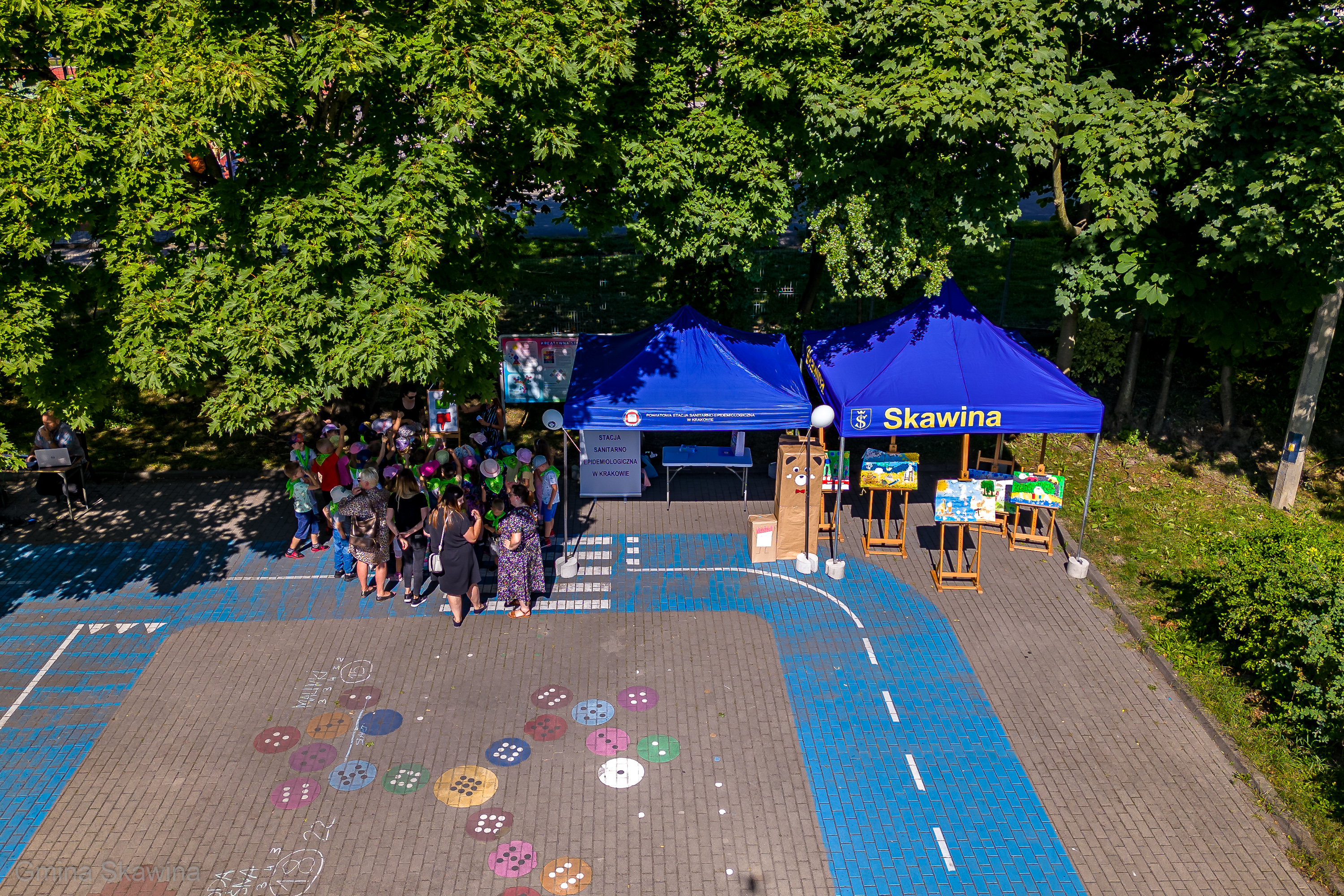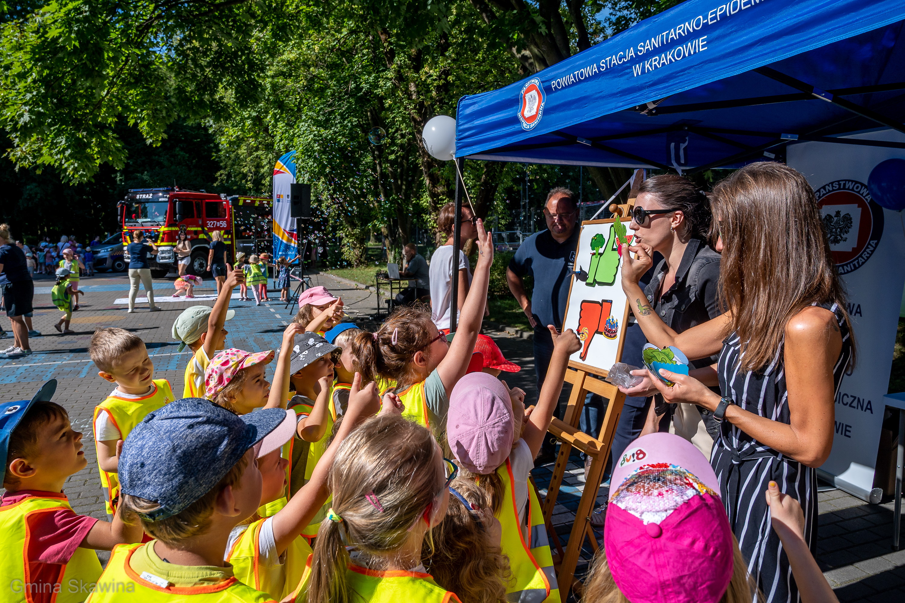 Po uroczystym wręczeniu nagród dzieci wzięły udział w zorganizowanym przez Oddział Oświaty Zdrowotnej i Promocji Zdrowia torze przeszkód oraz quizie na temat zdrowego odżywiania. Każdy przedszkolak otrzymał edukacyjną kolorowankę. Dzięki współpracy ze Strażą Miejską, Strażą Pożarną oraz Pogotowiem Ratunkowym dzieci dowiedziały się więcej o bezpiecznym spędzaniu wakacji, miały także okazję usiąść w wozie strażackim, radiowozie oraz ambulansie, a Centrum Kultury i Sportu w Skawinie zapewniło im zajęcia ruchowo-sportowe oraz wspólną zabawę w bańkach mydlanych, która wywołała uśmiech na wszystkich buziach i na długo pozostanie w pamięci dzieci.