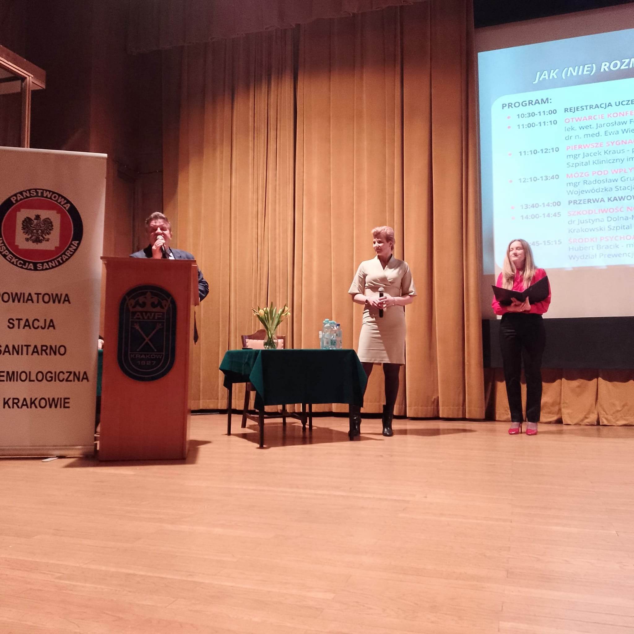 Wydarzenie rozpoczęli organizatorzy- Małopolski Państwowy Wojewódzki Inspektor Sanitarny oraz Państwowy Powiatowy Inspektor Sanitarny w Krakowie. W auli budynku głównego gościła nas Akademia Wychowania Fizycznego w Krakowie.