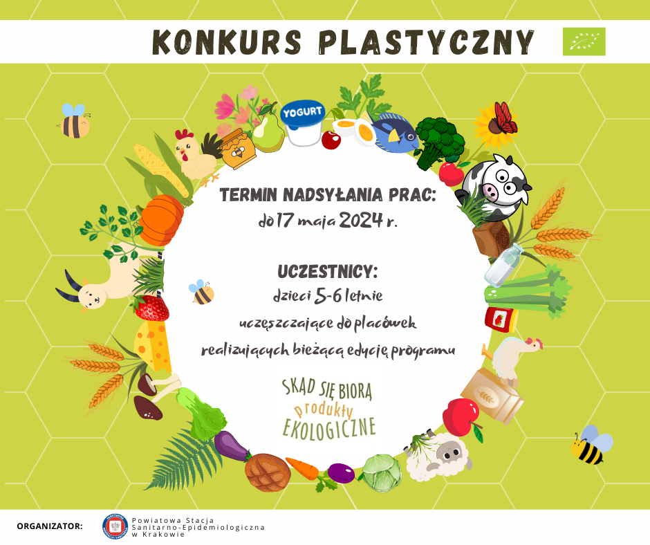 Państwowy Powiatowy Inspektor Sanitarny w Krakowie zaprasza do udziału w konkursie plastycznym „Skąd się biorą produkty ekologiczne?”.