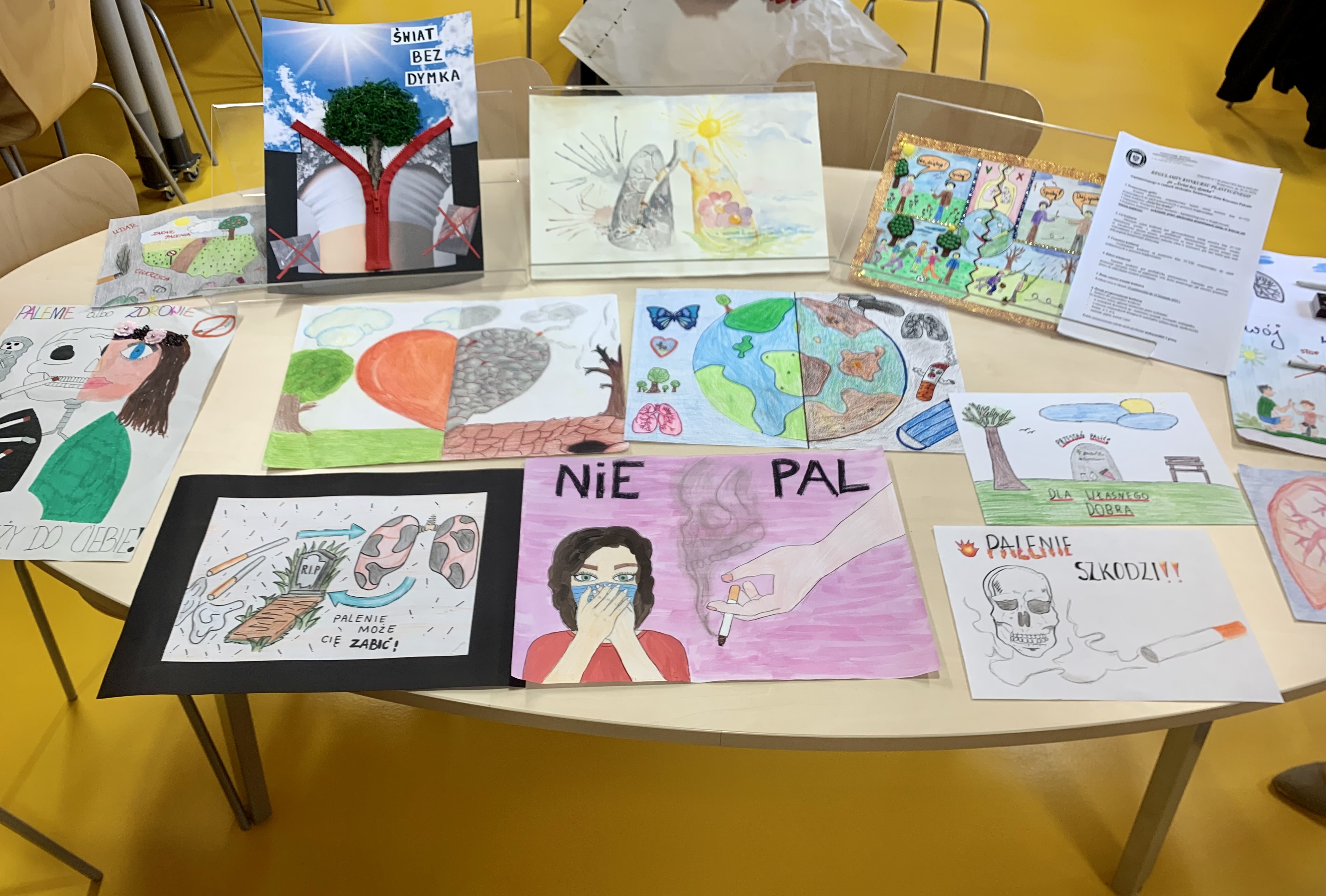 W dniu 22 listopada br. komisja konkursowa dokonała oceny prac biorąc pod uwagę m.in. czy tematyka prac promuje świat wolny od dymu papierosowego, jak również zastosowanie ciekawych technik i materiałów wykorzystanych w procesie twórczym.