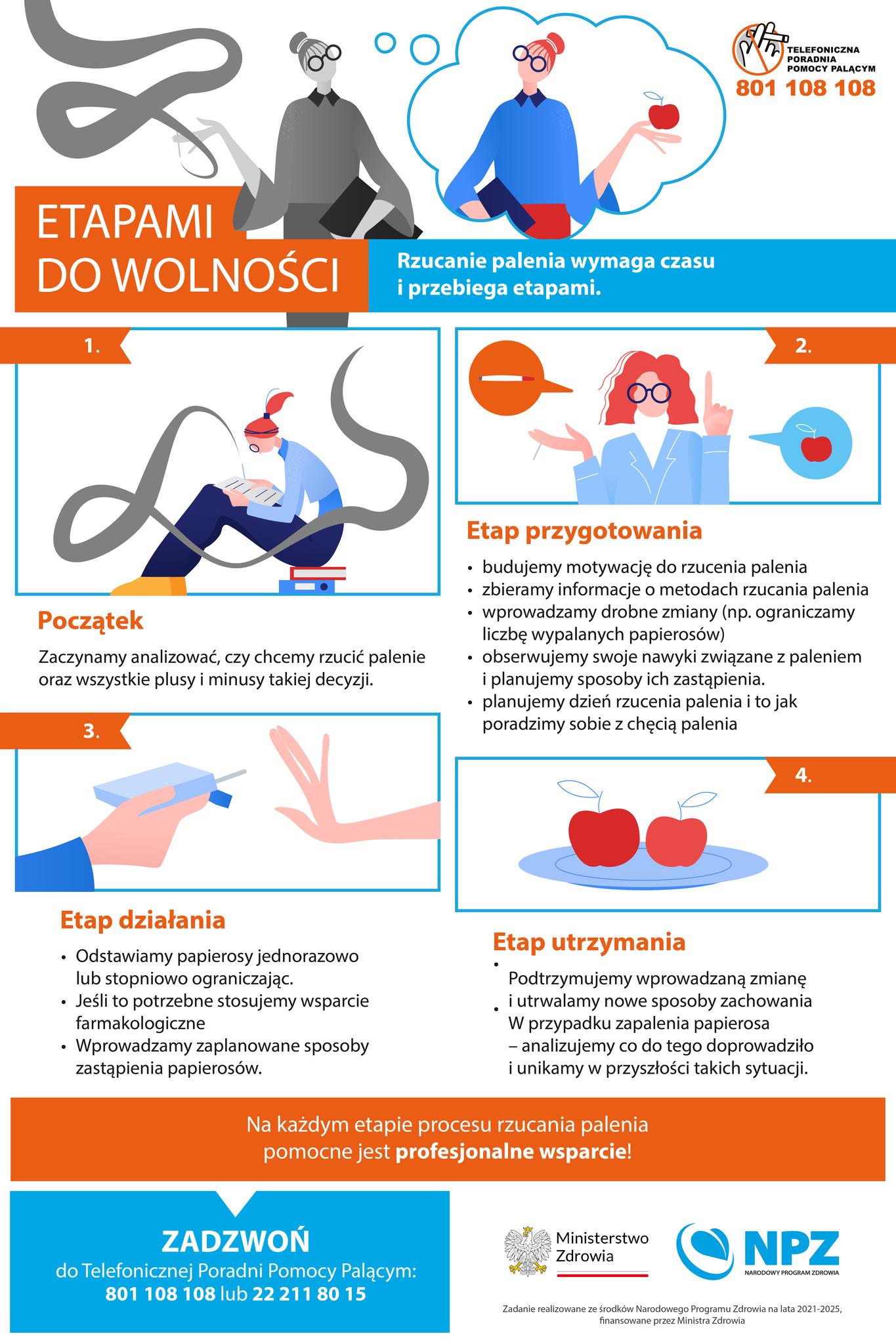 Jeśli chcesz rzucić palenie wejdź na stronę internetową http://jakrzucicpalenie.pl lub skontaktuj się z zespołem Telefonicznej Poradni Pomocy Palącym tel. 801 108 108; 22 211 80 15.