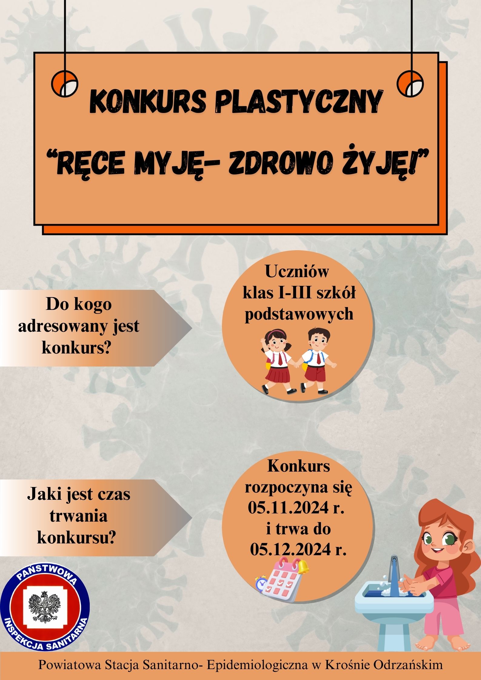 Z przyjemnością ogłaszamy konkurs plastyczny „Ręce myję- zdrowo żyję!”, który skierowany jest do uczniów klas I-III szkół podstawowych z terenu powiatu krośnieńskiego.