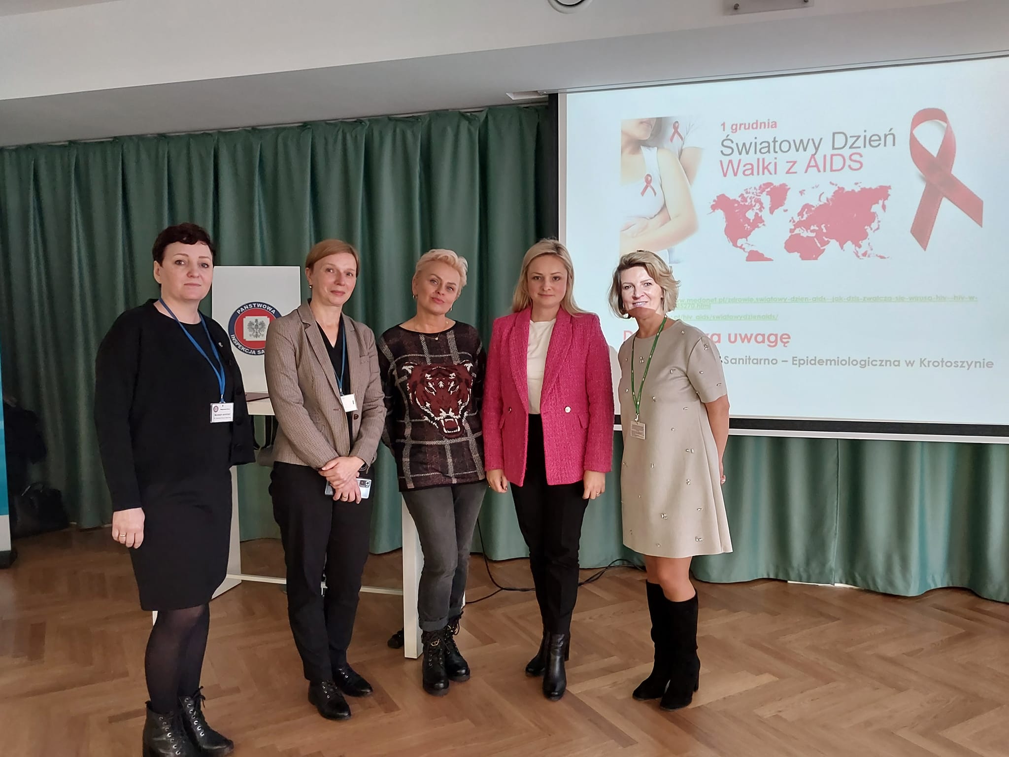 Na obchodach ŚWIATOWEGO Dnia AIDS swoją obecnością zaszczycili nas przedstawiciele Starostwa Powiatowego w Krotoszynie, tj. Pani Sekretarz Joanna Dymarska- Kaczmarek, p. Sylwia Dzierla, podinspektor Działu Spraw Obywatelskich, przedstawiciel Regionalnego Centrum Krwiodawstwa I Krwiolecznictwa z Kalisza p. Anna Janicka- Bialożyt, część wokalną zaprezentowała Zuzanna Płaczek, utytuowana wokalistka o przepięknym, mocnym głosie. Klamrą spotkania było rozstrzygnięcie i wręczenie nagród w wojewodzkim konkursie " Nie daj szansy AIDS", skierowanym do uczniów szkół ponadpodstawowych. Wszystkim uczestnikom konkursu wręczono nagrody ufundowane przez Starostwo Powiatowe w Krotoszynie, RCKiK w Kaliszu, Bank Spółdzielczy w Krotoszynie oraz PSSE w Krotoszynie. Sponsorom serdecznie dziękujemy i gratulujemy laureatom: III miejsca- Julia Pluta z ZSP Nr 3 w Krotoszynie, II miejsca- Oliwii Hamrol z ZSP Nr1 w Krotoszynie oraz I miejsca - Hannie Rogosz z ZSPNr1 w Krotoszynie. Brawo!