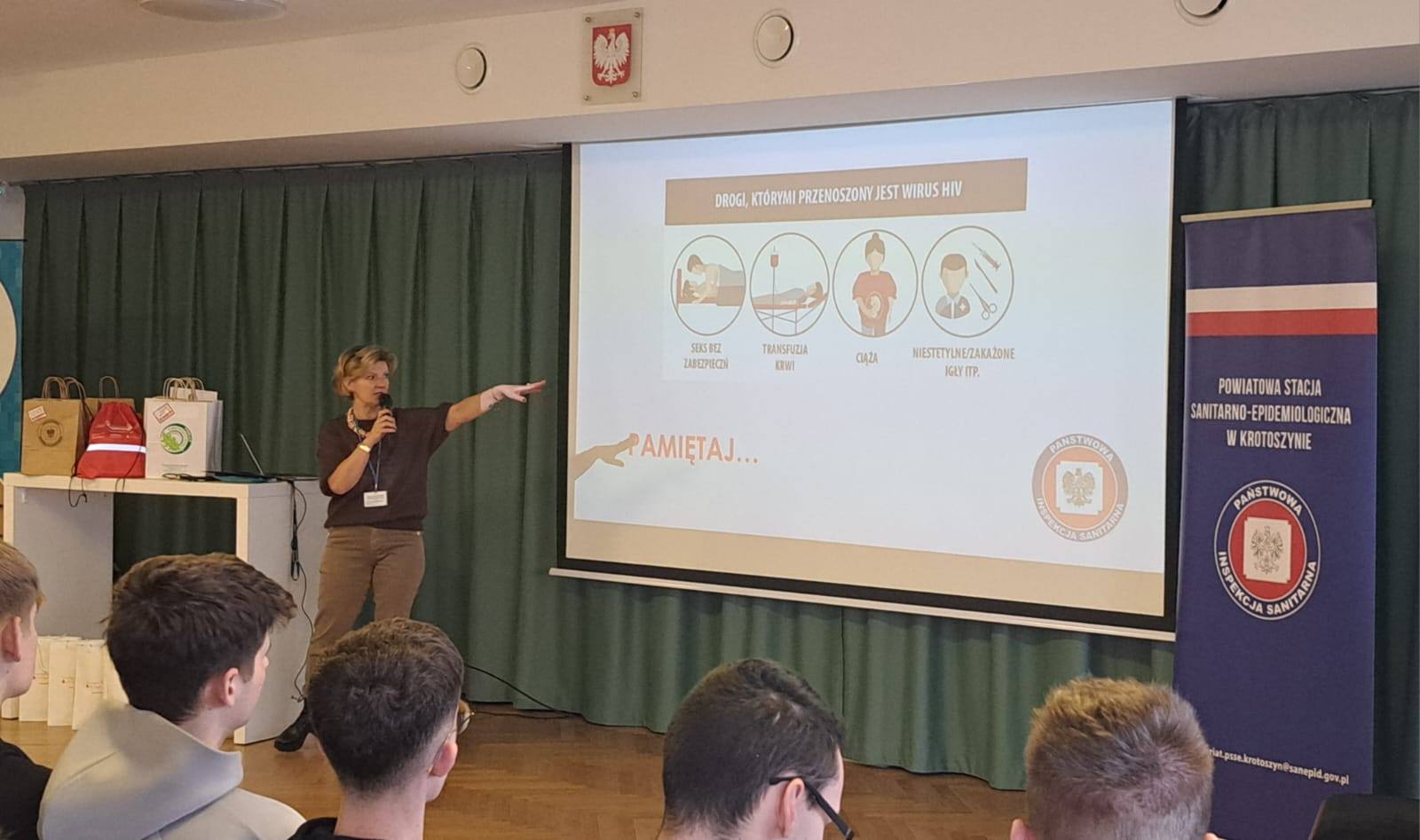 ŚWIATOWY DZIEŃ AIDS w Powiatowej Stacji Sanitarno- Epidemiologicznej w Krotoszynie rozpoczął się prelekcją nt profilaktyki HIV/AIDS,omówieniem dróg zakażenia, statystyk z Polski i regionu, testowania oraz przedstawieniem zasad działania Punktów Konsultacyjno- Diagnostycznych.