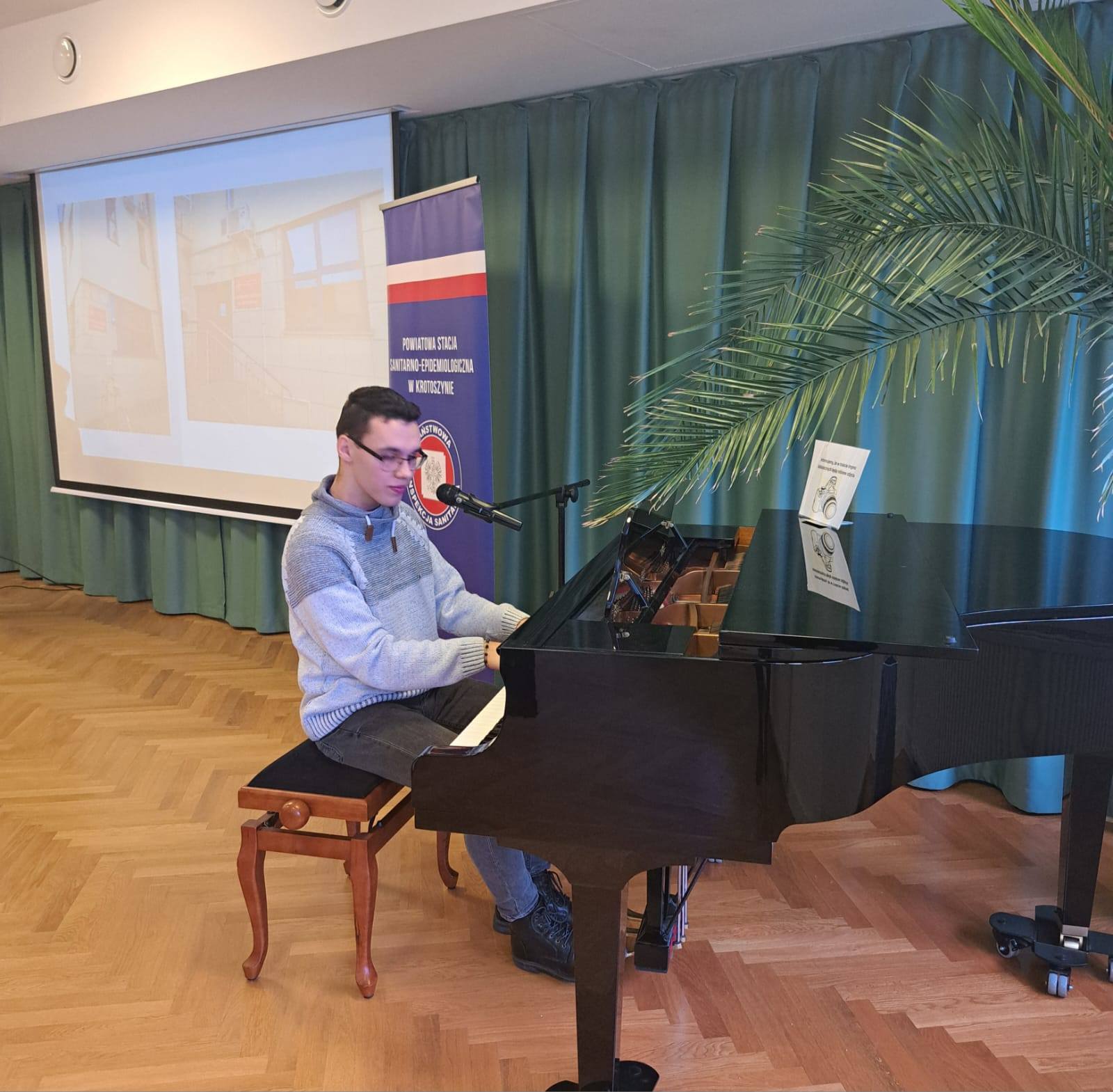 Atmosferę umilił niezwykle wzruszajacy reczital Damiana Woźniaka, ucznia ZSP1 - Zespół Szkół Ponadpodstawowych nr 1 w Krotoszynie, który zaskoczył jakże dojrzałym i przejmującym głosem.
