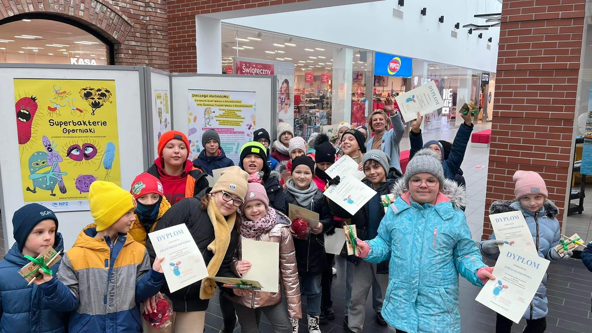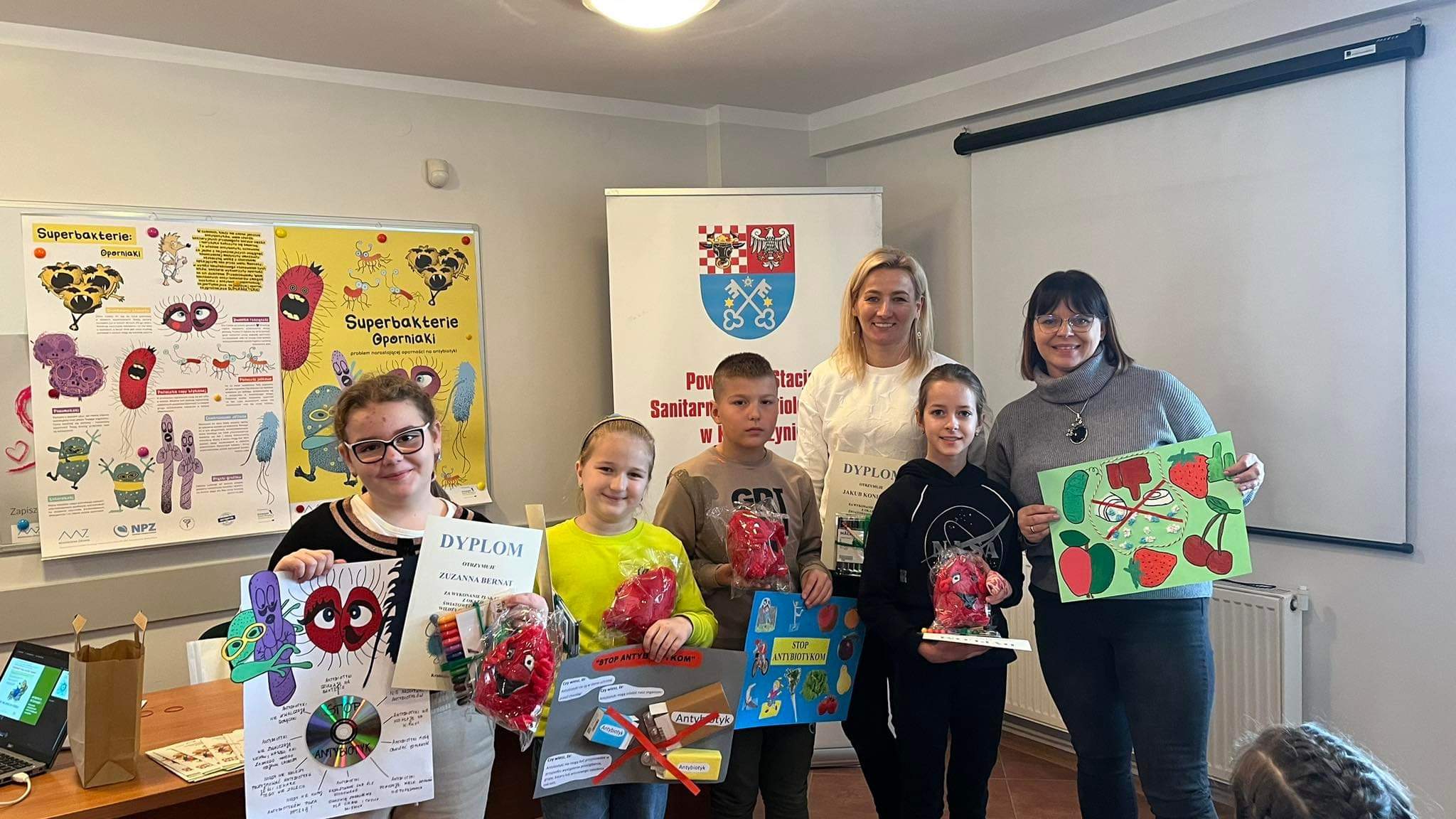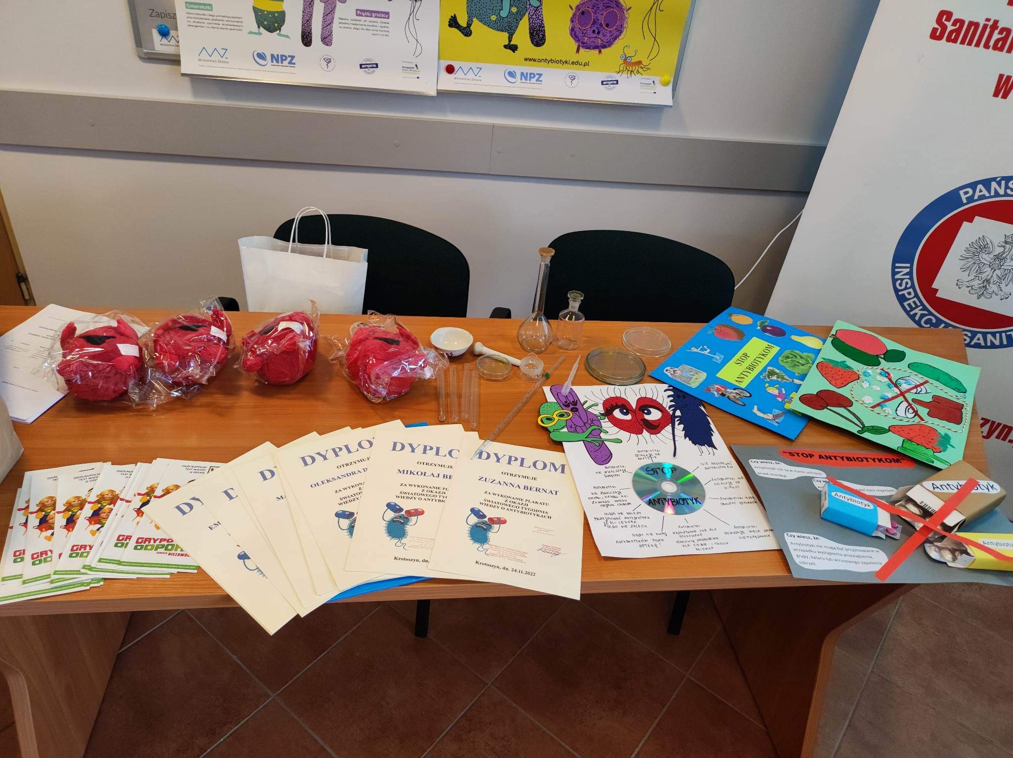 W drugiej części spotkania wręczono nagrody uczniom, których prace zostały wyróżnione w konkursie plastycznym pt. "Stop antybiotykom". Na zakończenie dzieci podziwiały wystawę plakatów z Narodowego Instytutu Leków, który koordynuje w Polsce działania kampanii Europejski Dzień Wiedzy o Antybiotykach i Światowy Tydzień Wiedzy o Antybiotykach 2022.