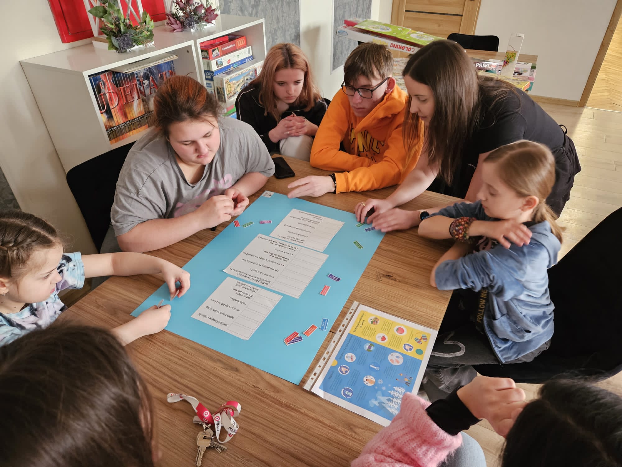 W ramach spotkania profilaktycznego Akcja Zima 2025 dzieci mały okazję uczestniczyć w konkursach, rozwiązywali edukacyjną krzyżówkę, za udział w tych działaniach otrzymywali drobne upominki ufundowane przez Starostwo Powiatowe w Kutnie.