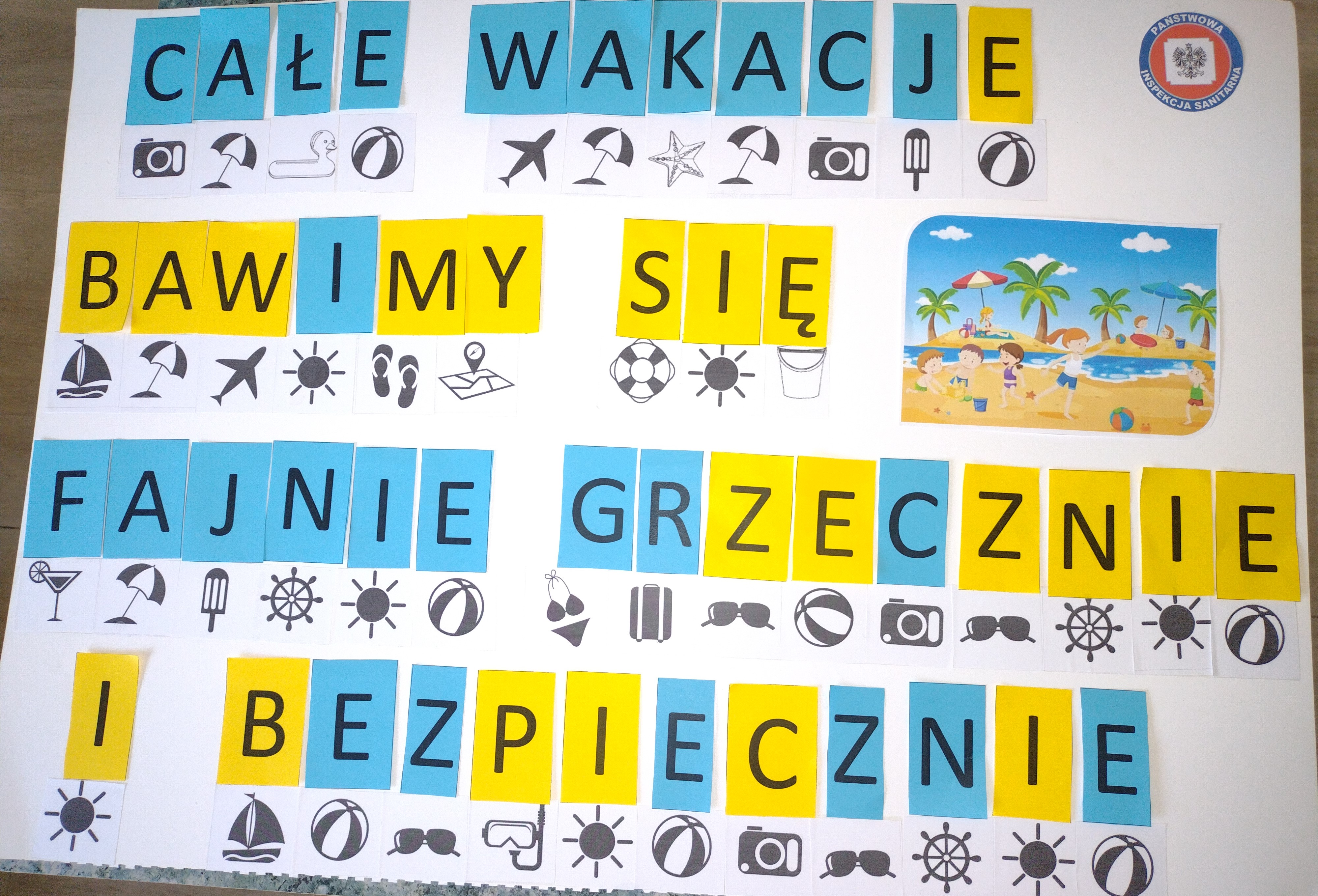 Prelekcja zakończyła się wspólną zabawą w trakcie której dzieci z rozsypanych literek ułożyły wakacyjne hasło.