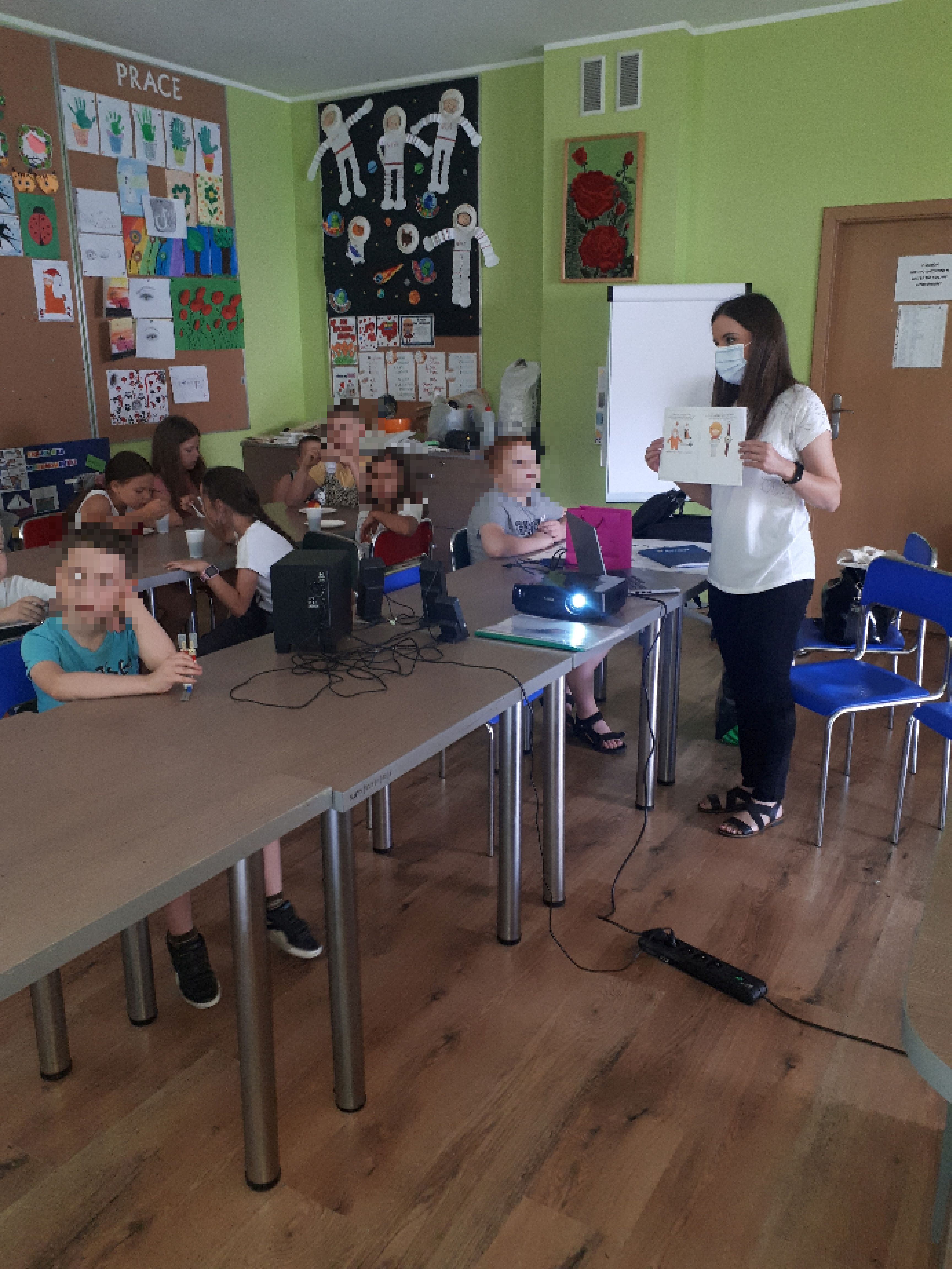 W ramach działań prozdrowotnych podczas Akcji Lato 2021 – w świetlicy profilaktyczno – wychowawczej „Rodzinka” w Kutnie dnia 12.07.2021r. odbyło się spotkanie uczestników zajęć z przedstawicielkami Powiatowej Stacji Sanitarno- Epidemiologicznej w Kutnie - Oświata Zdrowotna i Promocja Zdrowia. Podczas wielotematycznej prelekcji omówiono m.in.: zasady bezpieczeństwa podczas upałów, czym grozi ugryzienie przez kleszcza, zasady bezpiecznego wypoczynku w czasie pandemii w górach, nad wodą, w lesie, na wsi, w mieście. Ponadto omówiono profilaktykę chorób zakaźnych przenoszonych drogą pokarmową ,w tym tzw. „brudnych rąk” oraz profilaktykę zdrowego i higienicznego stylu życia z zaznaczeniem jak prostym i skutecznym sposobem jest mycie rąk by zatrzymać rozprzestrzenianie się zakażeń tym bardziej w czasie trwającej pandemii. Uczestnicy spotkania dowiedzieli się o podstawowych zasadach mycia rąk oraz o tym, iż mycie rąk pozwala usunąć z powierzchni m.in. bakterie, wirusy czy grzyby odpowiadające za cały szereg groźnych chorób, jak choćby salmonellę. Te i wiele innych informacji zobrazowały temat przewodni jakim był „Całe wakacje bawimy się fajnie, grzecznie i bezpiecznie”.