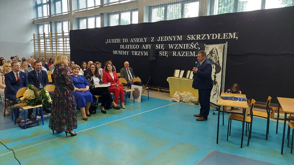 Dnia 09.06.2022r. przedstawicielki Powiatowej Stacji Sanitarno – Epidemiologicznej w Kutnie uczestniczyły w uroczystości Szkoły Podstawowej im. M. Konopnickiej w Byszewie. Obchodzony był Dzień Patrona Szkoły. Wśród zaproszonych gości znaleźli się min.: Wójt Gminy Kutno Justyna Jasińska, Radny Sejmiku Województwa Łódzkiego Waldemar Wojciechowski, Dyrektor Biura Senatora Przemysława Błaszczyka Aleksandra Dulkiewicz, Łódzki Kurator Oświaty Waldemar Flajszer, Przewodnicząca Rady Gminy Kutno Joanna Kajszczarek, Zastępca Dyrektora Centrum Usług Wspólnych Robert Witczak, Dyrektor Centrum Kultury Gminy Kutno Liliana Urbańczyk Wójcik, Dyrektor Gminnej Biblioteki Publicznej im. J. B. Zaleskiego w Leszczynku Piotr Czerbniak, Kierownik Gminnego Ośrodka Pomocy Społecznej w Kutnie Małgorzata Modrzejewska, Kierownik referatu organizacyjnego UGK Jolanta Mikołajczyk, Sekretarz Gminy Kutno Jacek Saramonowicz.