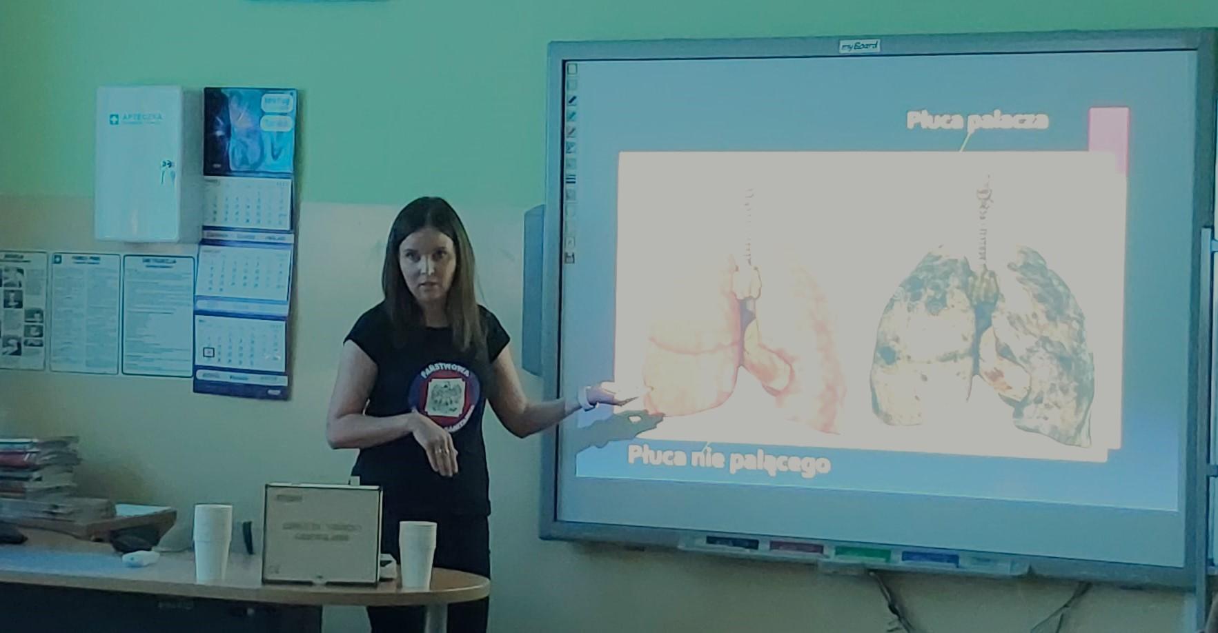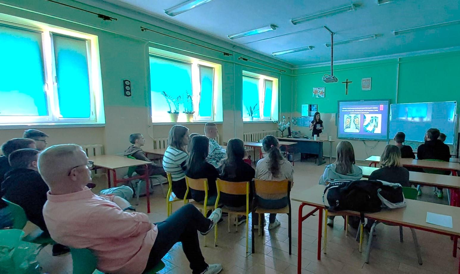 Dnia 20.05.2024 r. w Szkole Podstawowej im. Bohaterów Bitwy nad Bzurą w Imielnie pracownik Powiatowej Stacji Sanitarno-Epidemiologicznej – Oświata Zdrowotna i Promocja Zdrowia w Kutnie przeprowadziła prelekcję dla uczniów klas VII i VIII. Przedstawiono zagrożenia i konsekwencje jakie niesie zażywanie dopalaczy oraz środków psychoaktywnych. Podczas spotkania młodzież obejrzała spoty filmowe, w których zobaczyła jak rzeczywistość bezwzględnie weryfikuje oczekiwania wobec używek pt.: „Melanż. Oczekiwania vs. rzeczywistość”. Omówiono również zdrowotne skutki palenia tytoniu oraz spożywania alkoholu.
