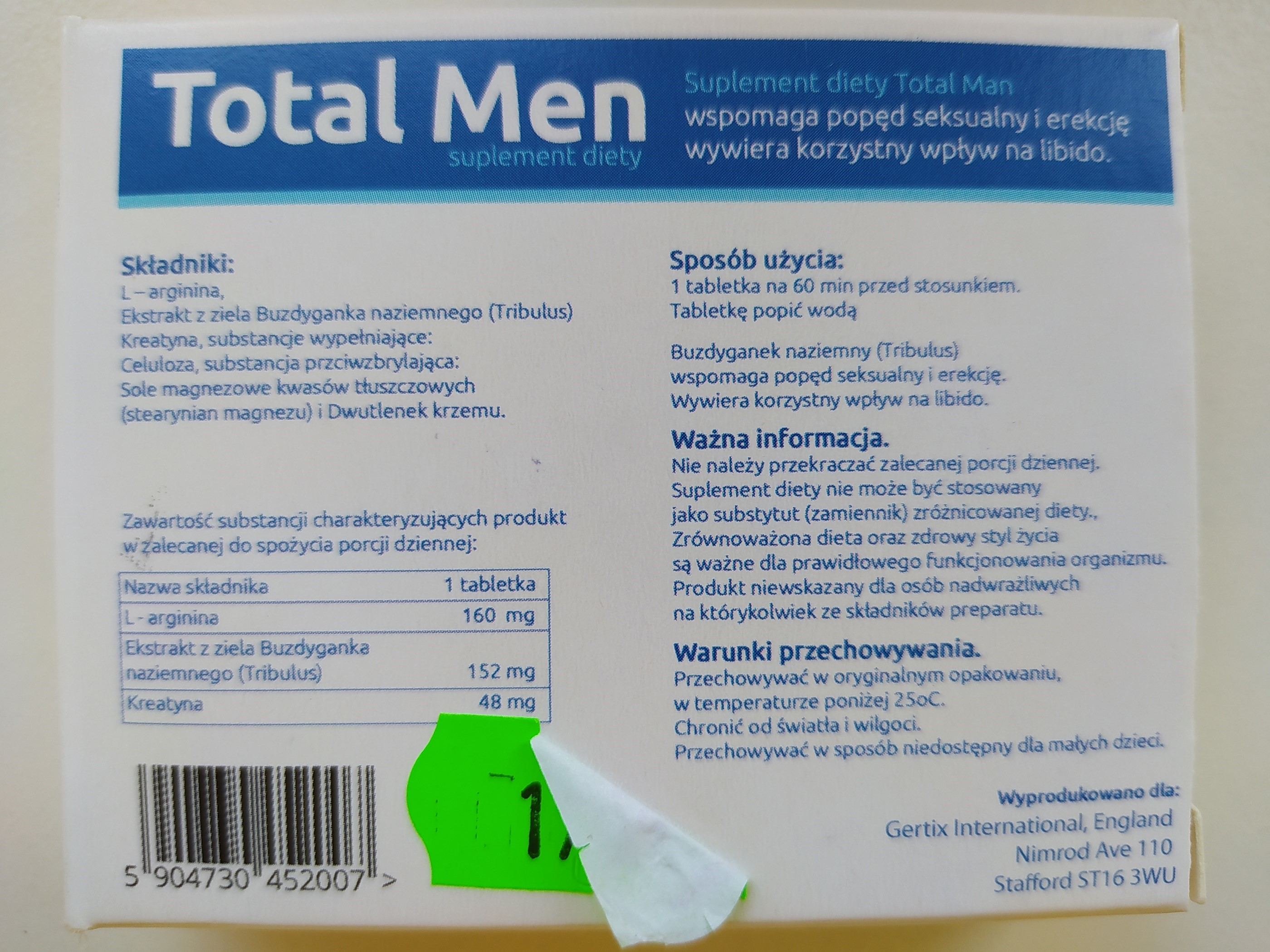 Ostrzeżenie publiczne dotyczące żywności: Obecność syldenafilu w produkcie pn. „Total Men” suplement diety
