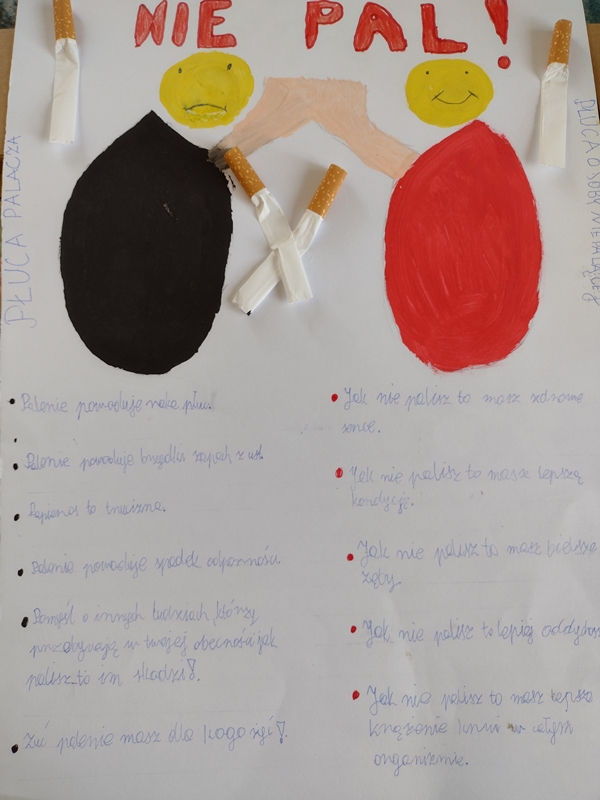 Przeprowadzone działania skoncentrowane wokół akcji „Światowego Dnia Rzucania Palenia Tytoniu” miały zwrócić uwagę na szkodliwość nałogu poprzez kształtowanie u dzieci postaw odpowiedzialności za zdrowie własne (w przypadku kiedy są narażone na „bierne palenie”) oraz zdrowie swoich bliskich.
