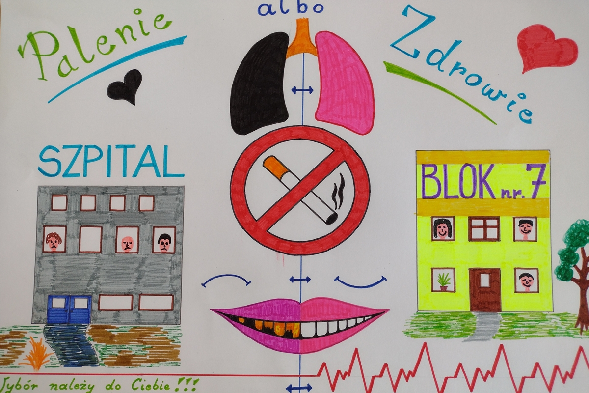 Państwowy Powiatowy Inspektor Sanitarny w Kutnie informuje, że Oświata Zdrowotna i Promocja Zdrowia w ramach współpracy ze Starostwem Powiatowym w Kutnie zorganizowała Powiatowy Konkurs Plastyczny dla uczniów szkół podstawowych z terenu Miasta Kutno i powiatu kutnowskiego o tematyce antynikotynowej. Konkurs stanowił okazję do naświetlenia problematyki uzależnienia od tytoniu w naszym otoczeniu jak również zobrazowania wpływu palenia tytoniu na zdrowie z uwzględnieniem aspektu biernego palenia. Dodatkowo przedmiotem konkursu było wykształcenie u dzieci świadomej postawy ochrony własnego zdrowia w sytuacjach, gdy są skazane na bezpośredni kontakt z palącymi oraz zwiększenie wrażliwości dzieci na szkodliwość dymu papierosowego. Konkurs cieszył się bardzo dużym zainteresowaniem. Do Powiatowej Stacji Sanitarno – Epidemiologicznej w Kutnie wpłynęło 176 prac plastycznych. Komisja Konkursowa wyłoniła 19 laureatów do nagród oraz wyróżniła 33 osoby.