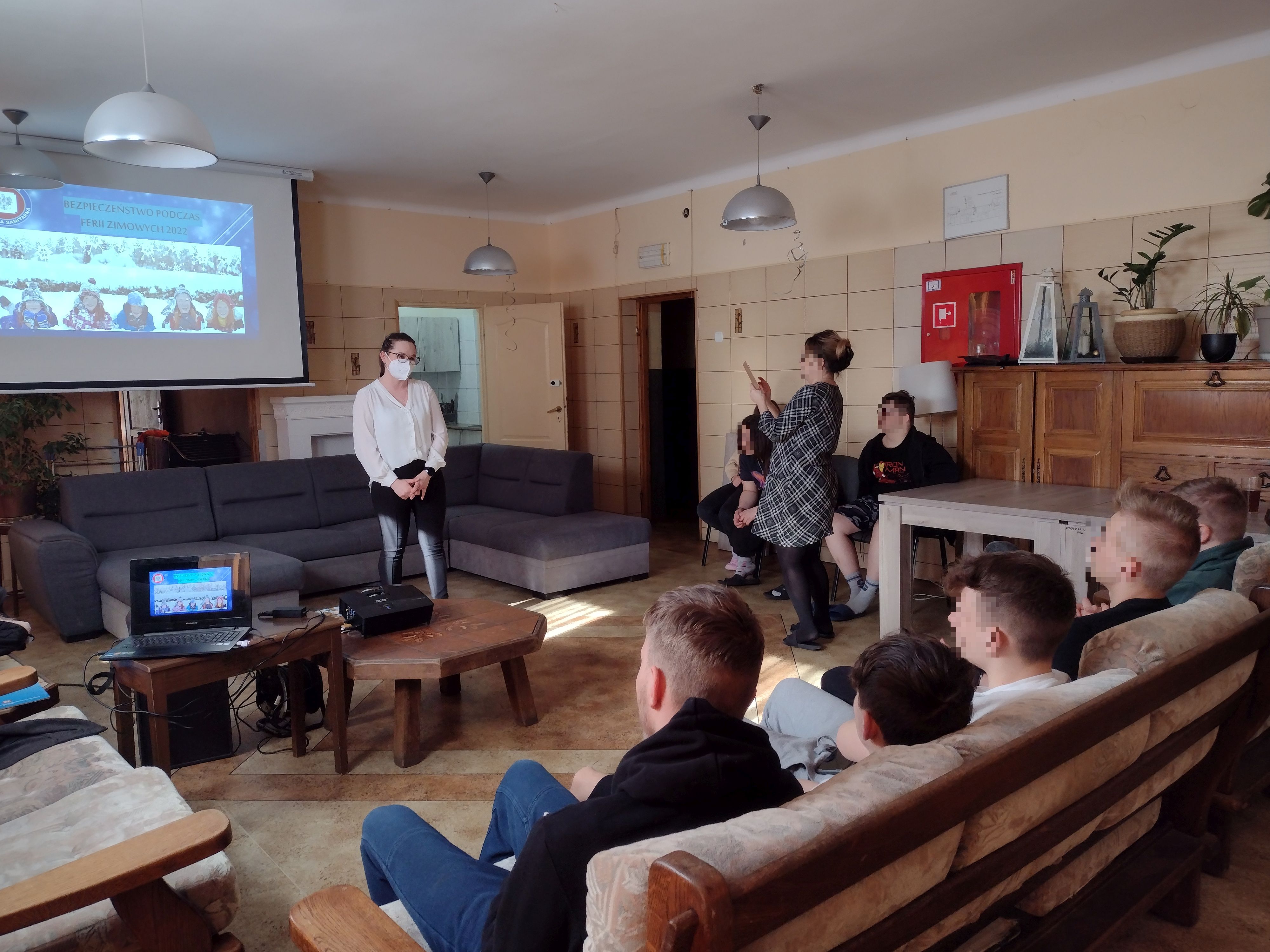 W dniu 24.02.2022r. w Placówce Opiekuńczo-Wychowawczej Tęcza w Kutnie odbyło się spotkanie z pracownicami Powiatowej Stacji Sanitarno-Epidemiologicznej, Dział Oświaty Zdrowotnej i Promocji Zdrowia. Spotkanie rozpoczęło się wyświetleniem filmu pt.: „Poznaj nasze zadania - Państwowa Inspekcja Sanitarna”- a w nim obraz czym zajmuje się Państwowa Inspekcja Sanitarna? Czemu warto znać jej kompetencje? Podczas prelekcji, która się odbyła w związku z Akcją Zima 2022 - przedstawiono uczestnikom najważniejsze zasady dotyczące bezpieczeństwa podczas ferii zimowych. Omówiono co robić gdy zarwie się pod kimś lód, przedstawiono najważniejsze numery alarmowe oraz krok po kroku jak dzwonić pod numer 112, jak również co w sytuacji gdy pod Tobą się zarwie lód oraz o zagrożeniu jakie stanowią zwisające z balkonów i dachów masywne sople lodu. Mówiono również o bezpieczeństwie na drodze w okresie zimowym i używaniu elementów odblaskowych, które są niezwykle ważne, ponieważ dzięki odblaskom kierowca samochodu zauważa pieszego z dużym wyprzedzeniem i ma czas na jego bezpieczne ominięcie. Uczestnicy chętnie włączali się w rozmowę jak bezpiecznie zachowywać się podczas ferii zimowych.
