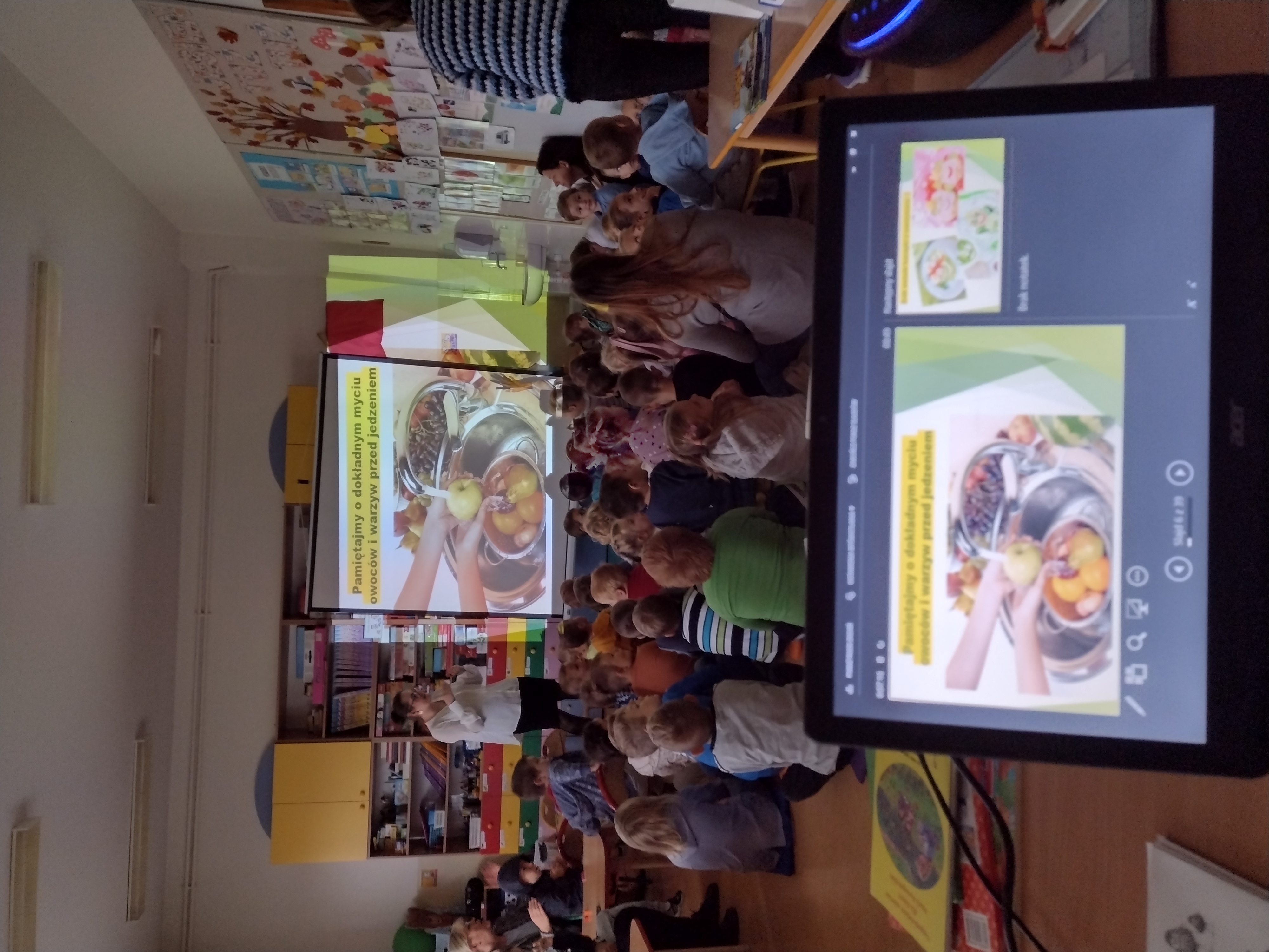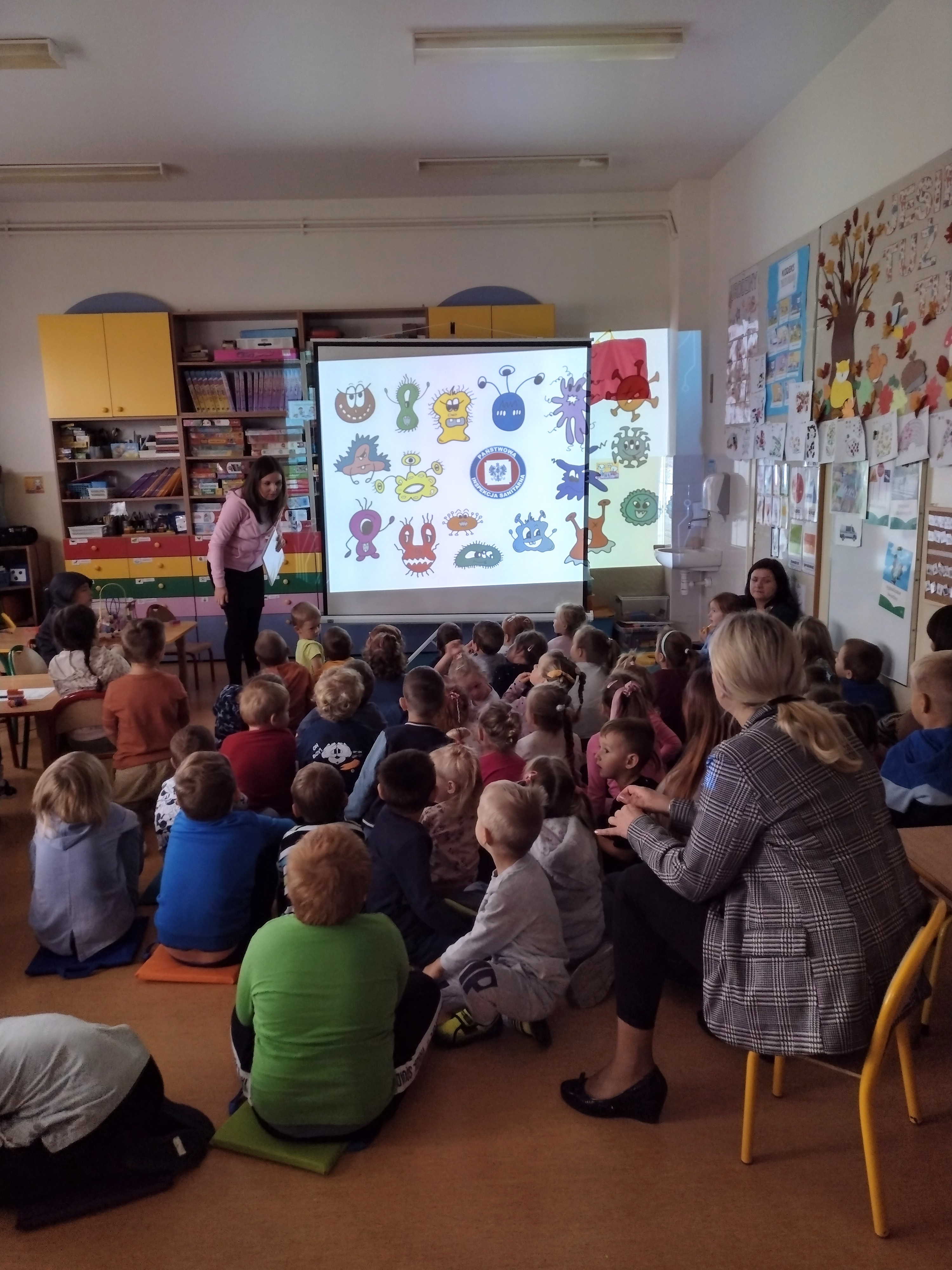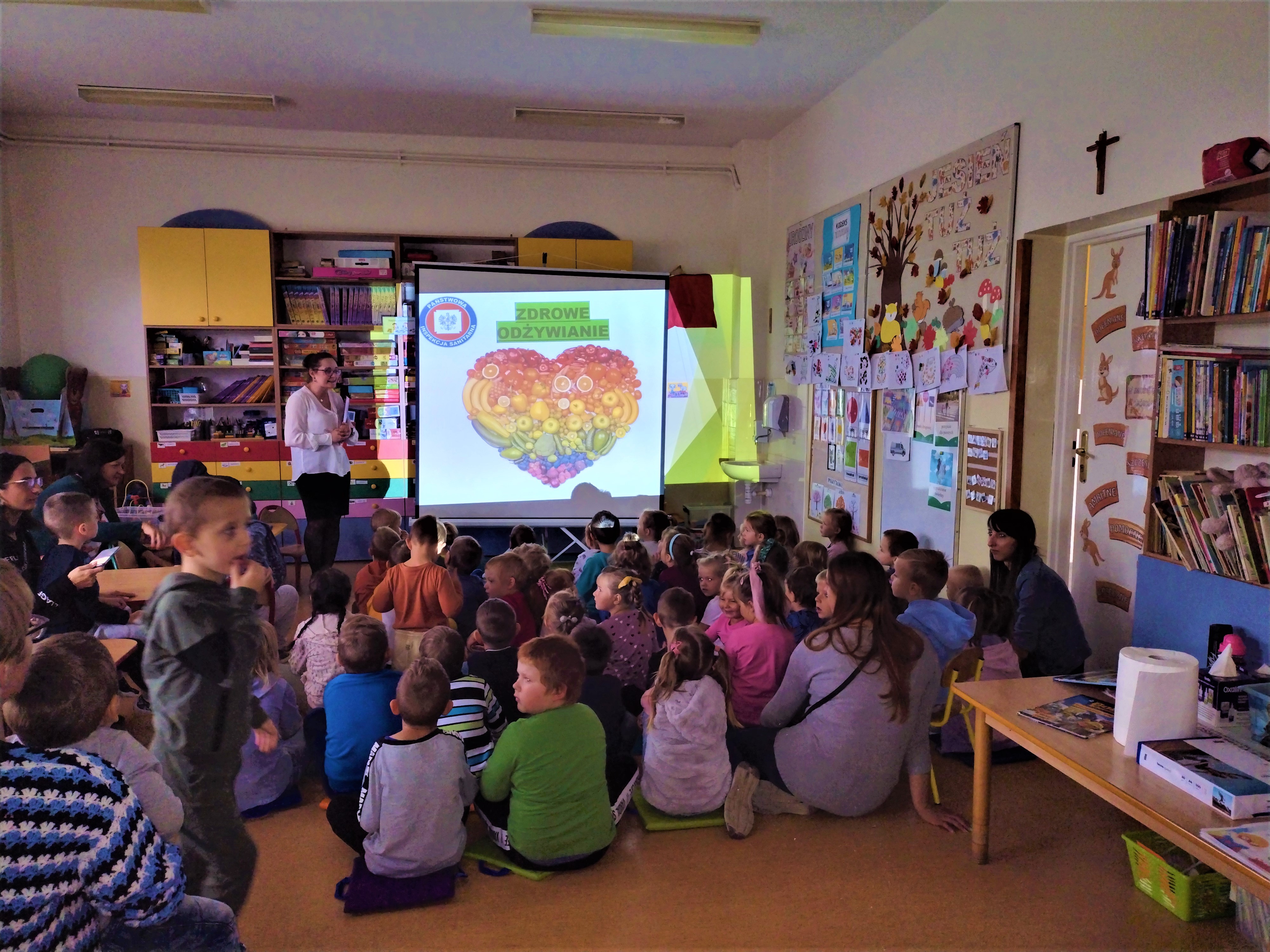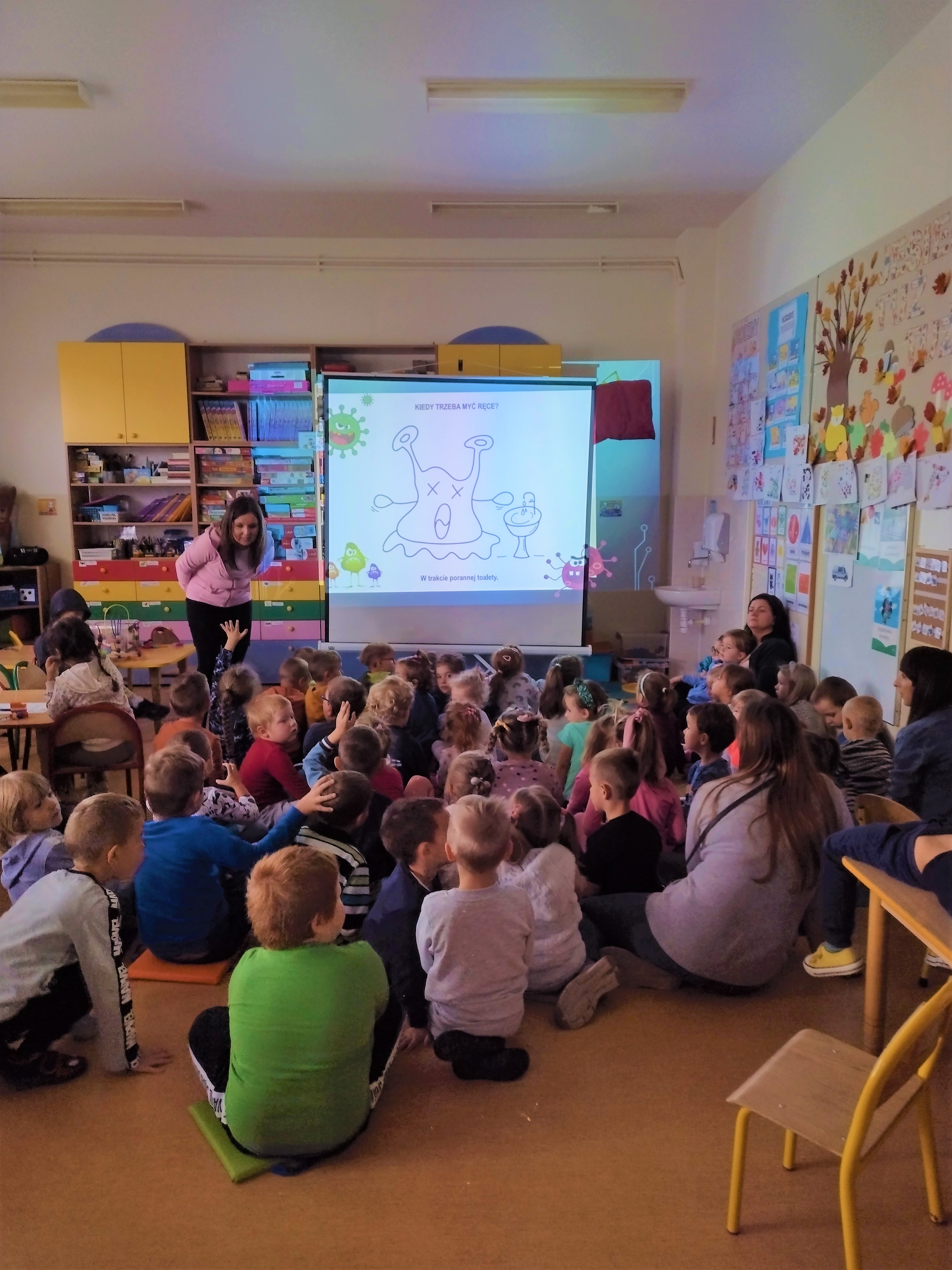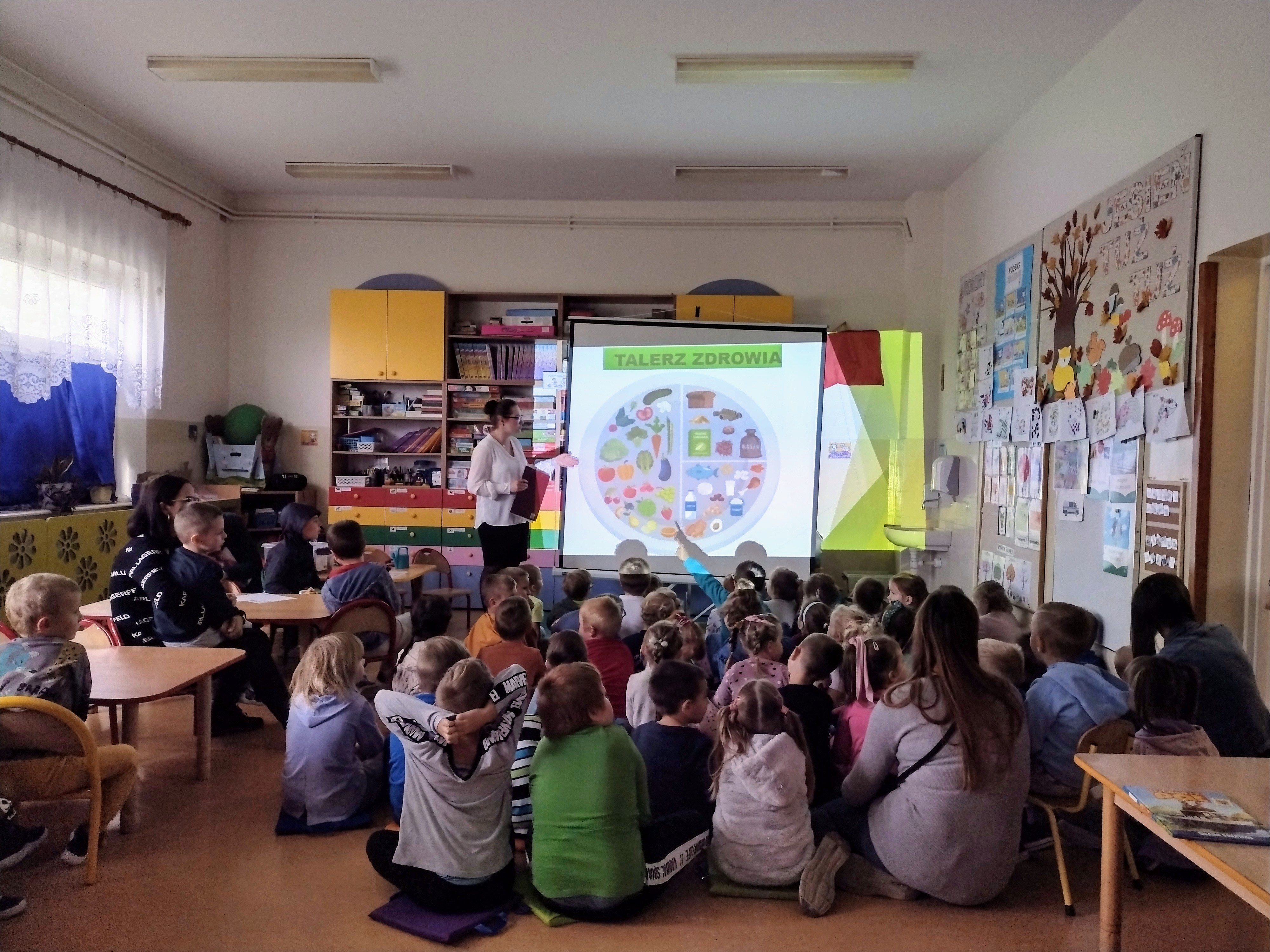 W dniu 20.09.2022 r. w Przedszkolu Lokalnym im. Kubusia Puchatka w Łaniętach pracownice Oświaty Zdrowotnej i Promocji Zdrowia Powiatowej Stacji Sanitarno-Epidemiologicznej w Kutnie przeprowadziły prelekcję. Pierwsza część spotkania została poświęcona zdrowemu odżywianiu, w głównej mierze na omówieniu „Talerza Zdrowia”. Podkreślono, również jak ważna jest dla organizmu aktywność fizyczna. Dziecko powinno jeść warzywa i owoce kilka razy dziennie w ramach głównych posiłków (co najmniej 5 porcji dziennie). Różnorodność spożywanych warzyw i owoców zapewnia dostarczenie wszystkich cennych składników odżywczych. Przedszkolaki bardzo chętnie włączały się do rozmowy na temat roli warzyw i owoców oraz jak zamieniać słodycze na zdrowe przekąski. Przypomniano dzieciom również o potrzebie codziennego ruchu, który wpływa korzystnie na kondycję fizyczną i sprawność umysłową oraz prawidłową sylwetkę. W drugiej części spotkania przedstawiono jakie są objawy przeziębienia oraz grypy. Następnie dokładnie omówiono i zaprezentowano dzieciom jak prawidłowo myć ręce. Prawidłowa higiena rąk to najprostsza i jedna z najbardziej skutecznych metod zapobiegania chorobom zakaźnym. Po przedstawionej prelekcji odbył się Quiz wiedzy, gdzie po wyczytanym zdaniu dzieci odpowiadały czy to prawda czy fałsz. Na zakończenie zaprezentowano przedszkolakom piosenkę pt.: ”Przegoń wirusa” - Śpiewające Brzdące.