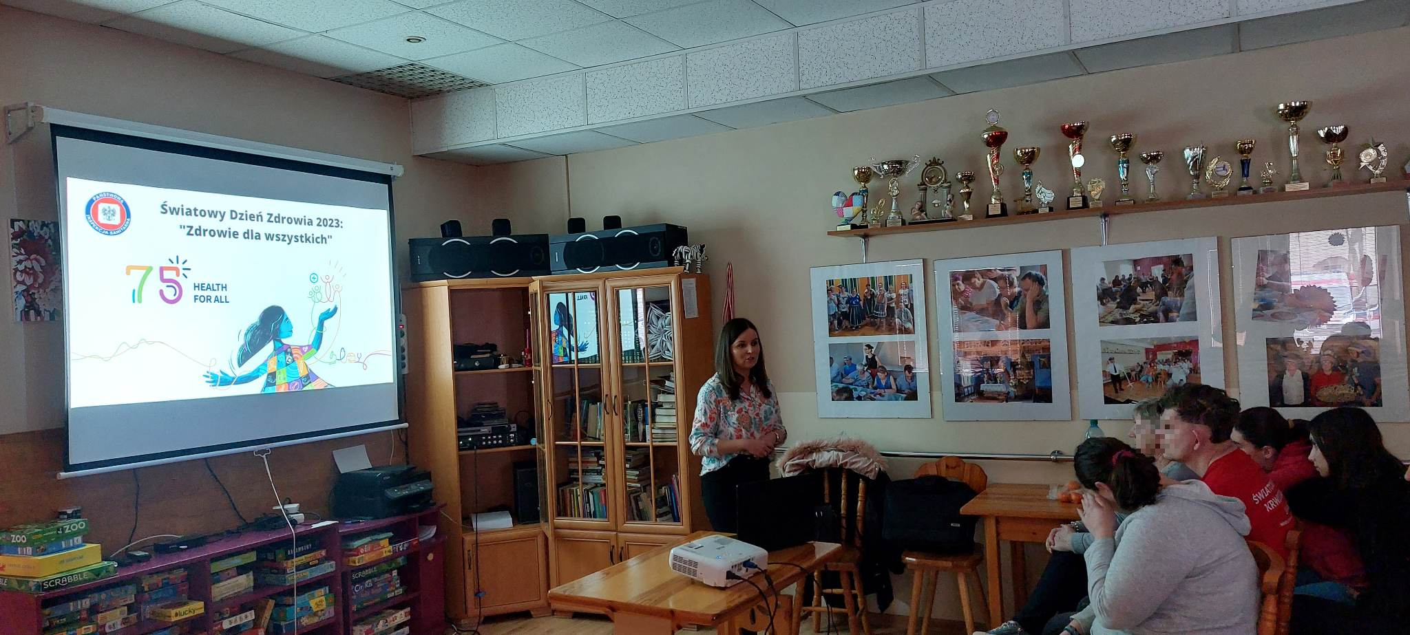 Dnia 21.03.2023r. w Środowiskowym Domu Samopomocy w Kutnie odbyła się prelekcja dot. zbliżającego się 7 kwietnia Światowego Dnia Zdrowia 2023 r. ph. „Zdrowie dla wszystkich” Podczas trwającego spotkania uczestnicy dowiedzieli się, że w 1948 roku kraje świata połączyły się i założyły WHO, aby promować zdrowie, dbać o bezpieczeństwo świata i służyć bezbronnym. Podczas spotkania podkreślono, iż najważniejszą wartością w życiu każdego człowieka jest ZDROWIE. W czasie zajęć prowadzone były rozmowy odpowiadające na pytanie dlaczego warto dbać o planetę. Uczestnicy wiedzą, że zanieczyszczenie powietrza, wody i gleby ma bezpośredni wpływ na nasze samopoczucie i zdrowie, ponadto stanowi zagrożenie dla istnienia wielu gatunków roślin i zwierząt. Dalsza część spotkania poświęcona była zdrowemu odżywaniu w tym żywności ekologicznej. Podopieczni utrwalili wiedzę na temat zasad higieny i zdrowego stylu życia. Na zadane pytanie: Wyrzucasz owoc do śmieci, czy wykrawasz nadpsuty kawałek? Uczestnicy wiedzą, iż to, co choćby w niewielkim stopniu zajęła pleśń, nie nadaje się już do jedzenia. W całości produktu, nawet po odkrojeniu spleśniałego fragmentu, znajdują się mykotoksyny – wysoce szkodliwe substancje produkowane przez pleśnie o działaniu toksycznym i rakotwórczym dla człowieka.