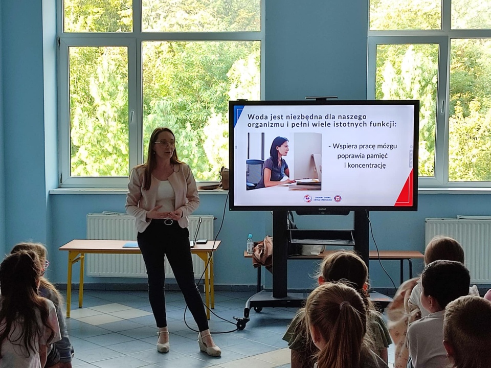 w Oporowie przeprowadzona przez pracownika Powiatowej Stacji Sanitarno -Epidemiologicznej w Kutnie. Spotkanie dla uczniów klas I-V miało na celu zaznaczyć jakie funkcje odgrywa woda w naszym organizmie oraz dlaczego picie wody