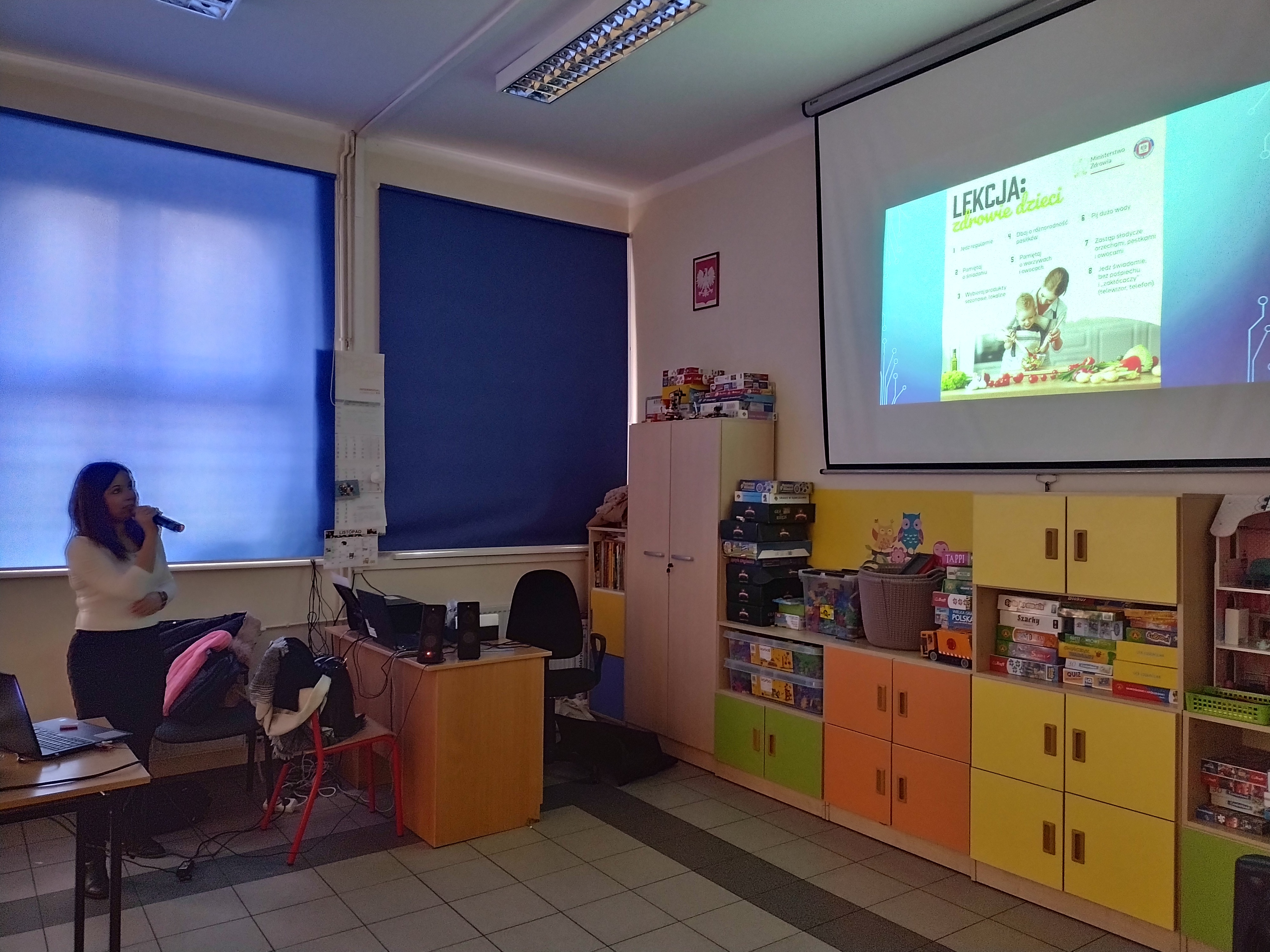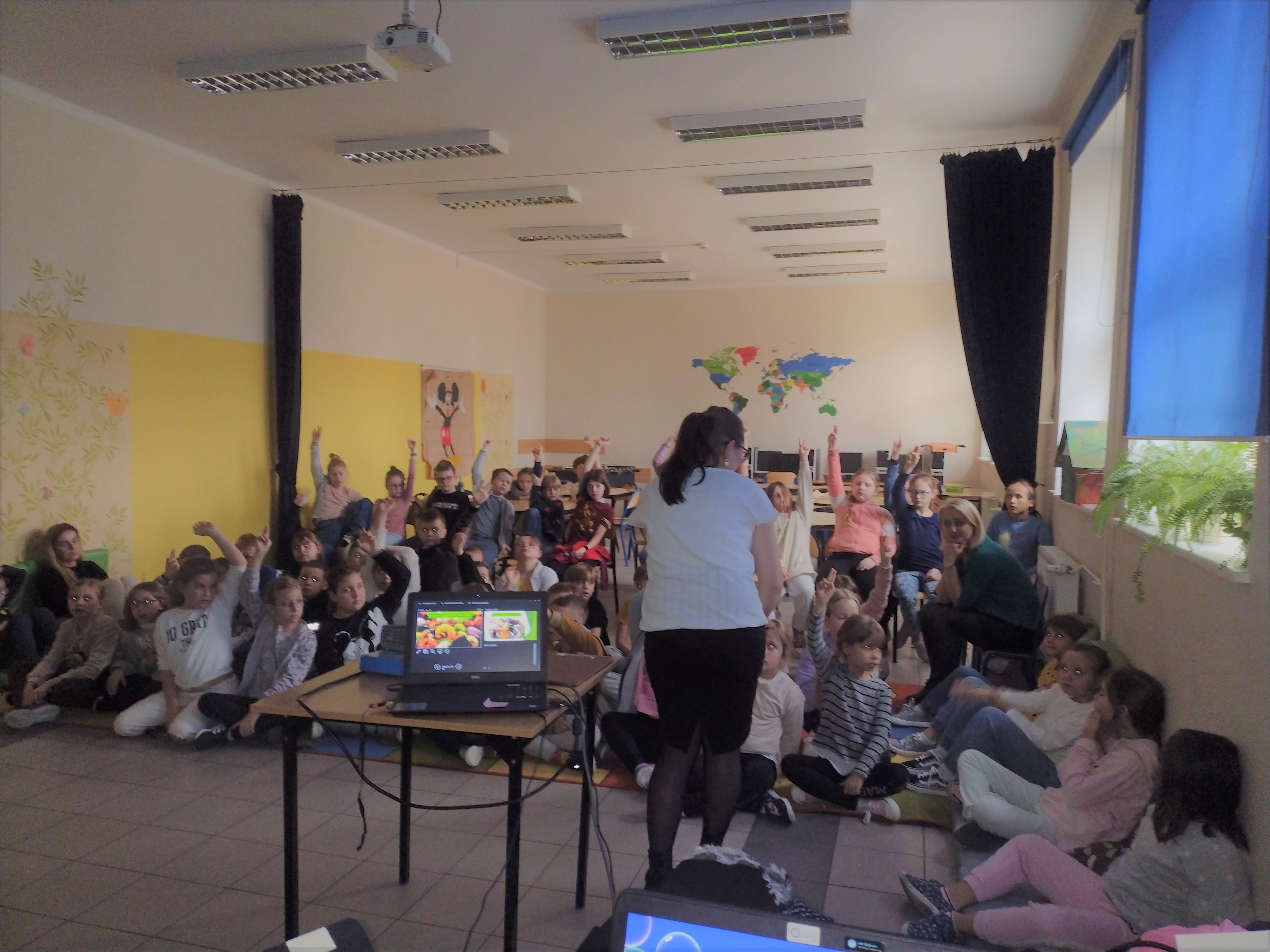 W dniu 14.11.2022 r. pracownice Oświaty Zdrowotnej i Promocji Zdrowia Powiatowej Stacji Sanitarno-Epidemiologicznej w Kutnie przeprowadziły prelekcję z podziałem na dwie grupy, dla dzieci z klas I-III ze Szkoły Podstawowej nr 2 im. Marszałka Józefa Piłsudskiego w Kutnie. Zaprezentowano dzieciom jak wygląda „Talerz zdrowia” i omówiono podstawowe zasady zdrowego odżywiania. Dzieci bardzo chętnie rozmawiały na temat roli warzyw i owoców w codziennej diecie oraz jak zamieniać słodycze na zdrowe przekąski. Podczas prelekcji wskazano, że podstawową ochroną przed grypą oraz wszelkimi wirusami i bakteriami jest mycie rąk. Uczniowie sami wymieniali kiedy szczególnie powinno się myć ręce. Przypomniano dzieciom również o potrzebie codziennego ruchu, który wpływa korzystnie na kondycję fizyczną i sprawność umysłową oraz prawidłową sylwetkę.