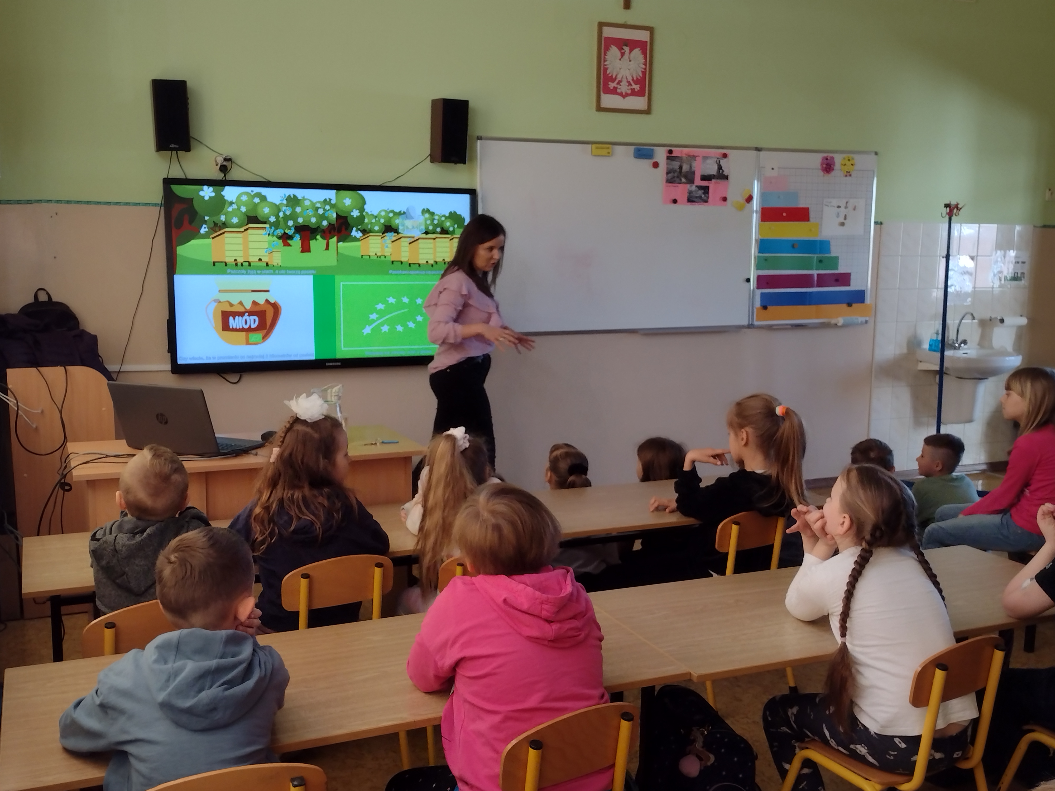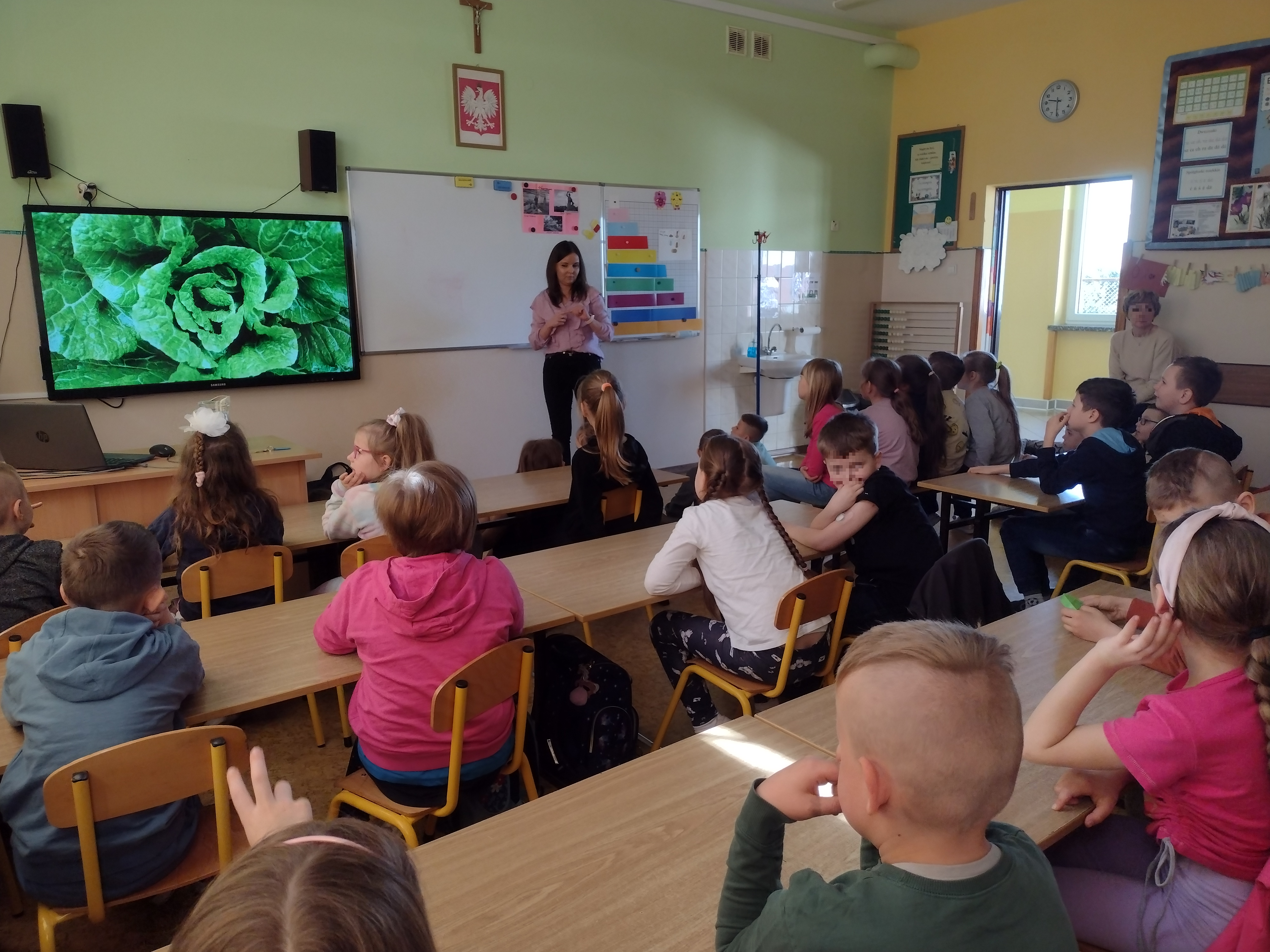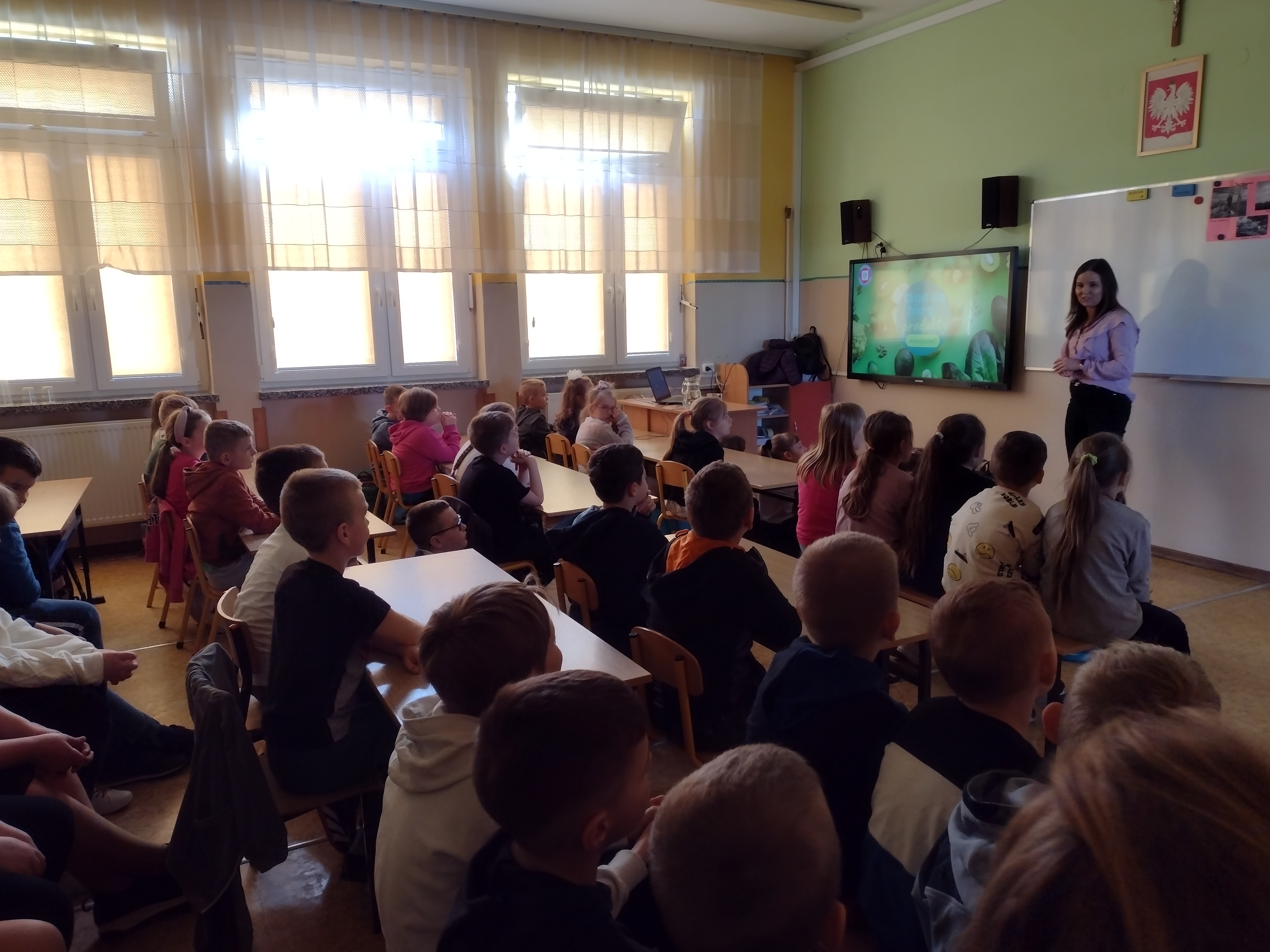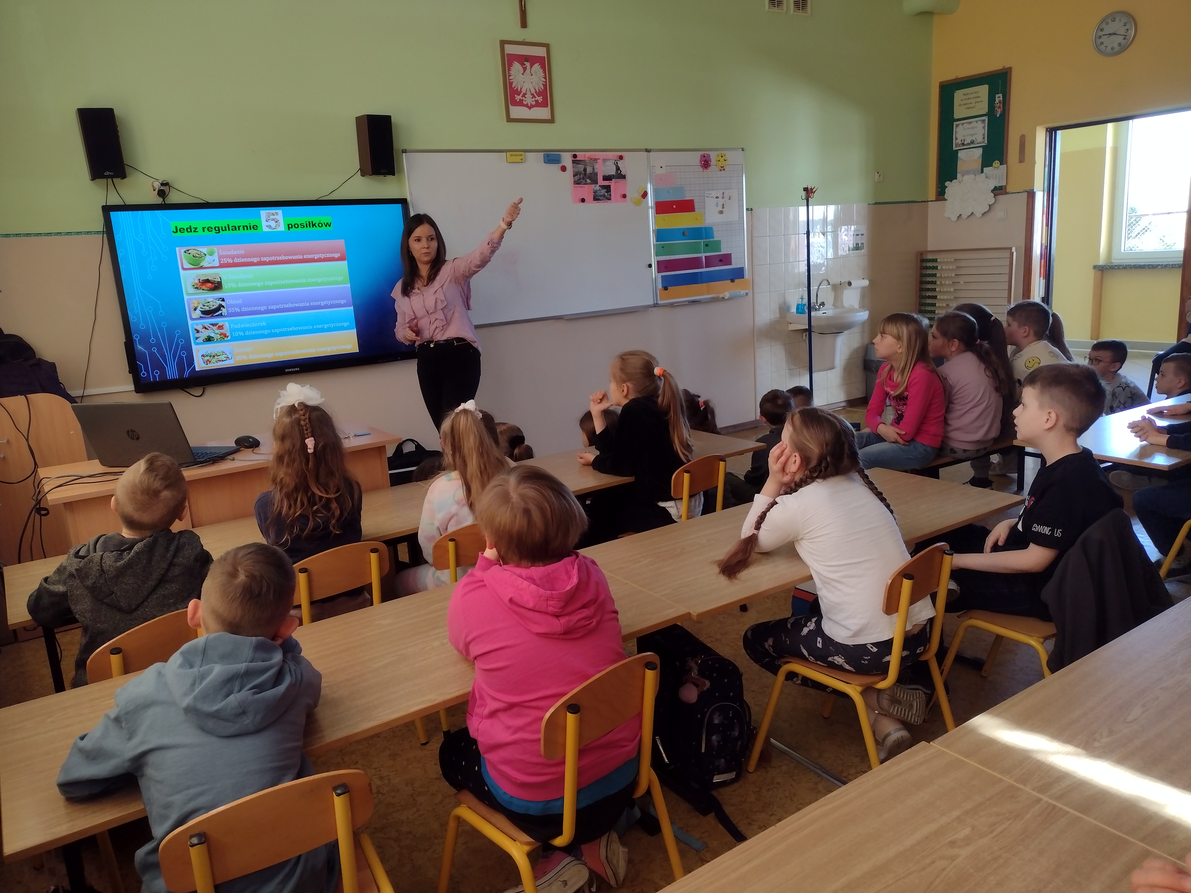 Dnia 27.04.2023 r. w Szkole Podstawowej im. Kornela Makuszyńskiego w Łaniętach odbyła się prelekcja przeprowadzona przez pracownika Powiatowej Stacji Sanitarno - Epidemiologicznej w Kutnie. Uczestnicy podczas spotkania dowiedzieli się, iż zdrowe odżywiania to nic innego jak dostarczanie naszemu organizmowi wszystkich niezbędnych składników odżywczych każdego dnia w odpowiednich ilościach i proporcjach. Zaprezentowano dzieciom jak wygląda „Talerz zdrowia”. Ponadto dzieci dowiedziały się jak wygląda dzień rolnika w gospodarstwie ekologicznym, co to jest ekologiczne rolnictwo, dlaczego warto wybierać żywność ekologiczną, nauczyły się rozpoznawać po znaku wybrane produkty ekologiczne, utrwaliły wiedzę na temat zasad higieny i zdrowego stylu życia. Dzieci bardzo chętnie włączały się do rozmowy m.in. na temat roli warzyw i owoców w codziennej diecie.
