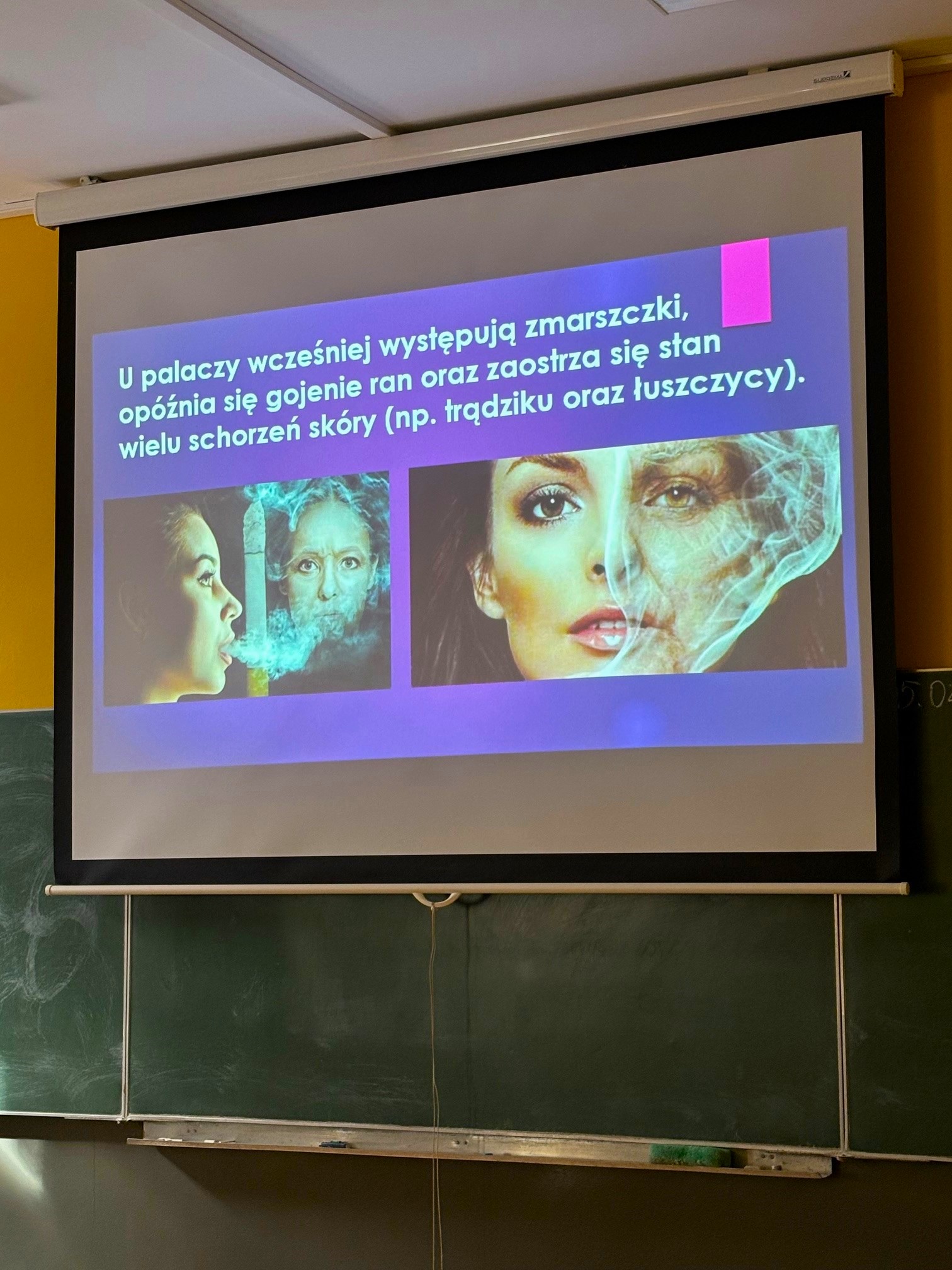 Dnia 05.04.2024 r. w Szkole Podstawowej im. Kornela Makuszyńskiego w Łaniętach pracownik Powiatowej Stacji Sanitarno-Epidemiologicznej w Kutnie przeprowadziła prelekcję dla uczniów klas VII i VIII dot. uzależnień.