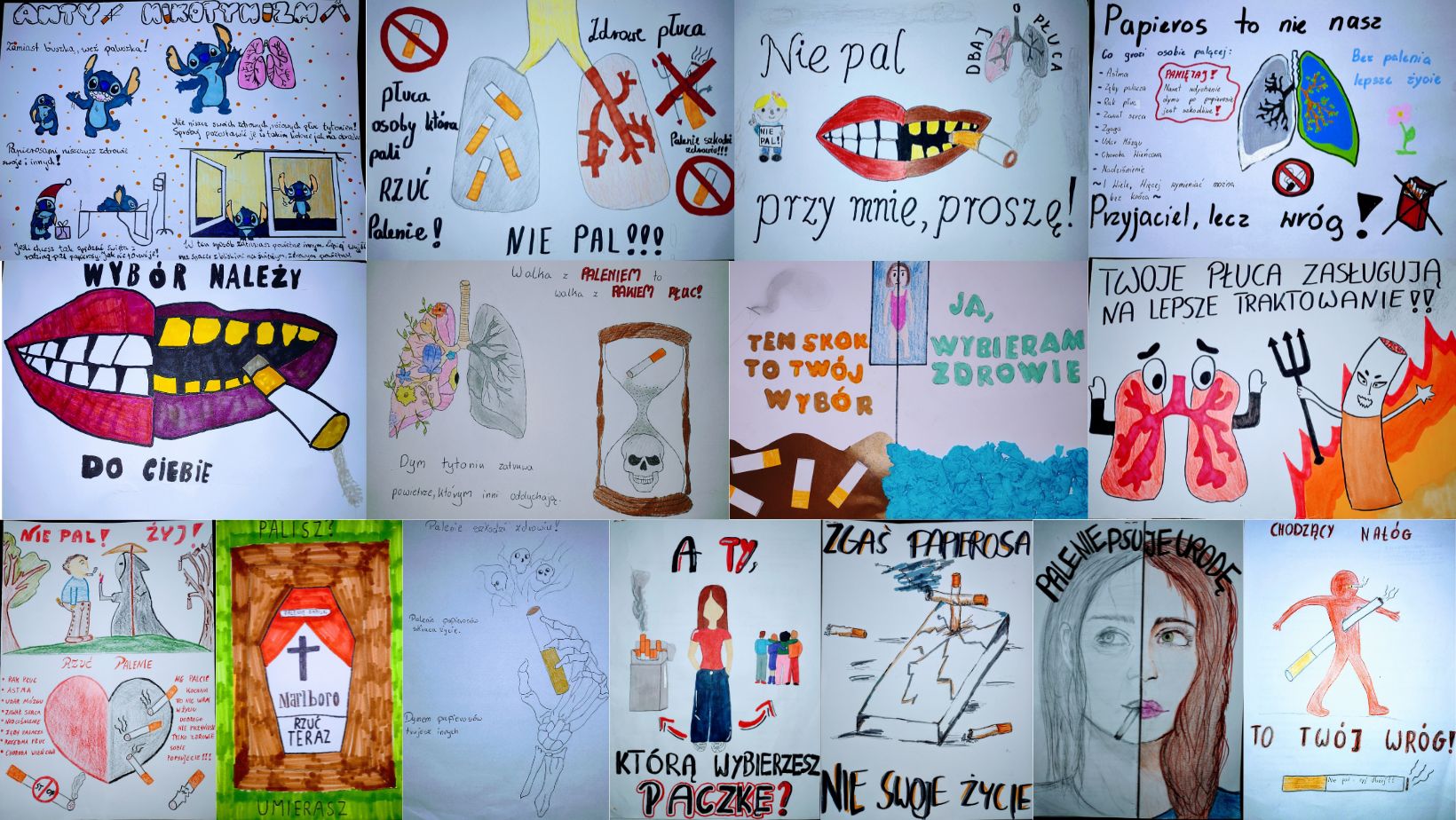 Na konkurs wpłynęło 51 prac plastycznych. Zadaniem uczniów przystępujących do konkursu było przygotowanie pracy plastycznej dowolnej techniki dot. propagowania zdrowego stylu życia w tym naświetlenie problematyki uzależnienia od tytoniu w naszym otoczeniu jak również zobrazowanie wpływu palenia tytoniu na zdrowie z uwzględnieniem aspektu biernego palenia.