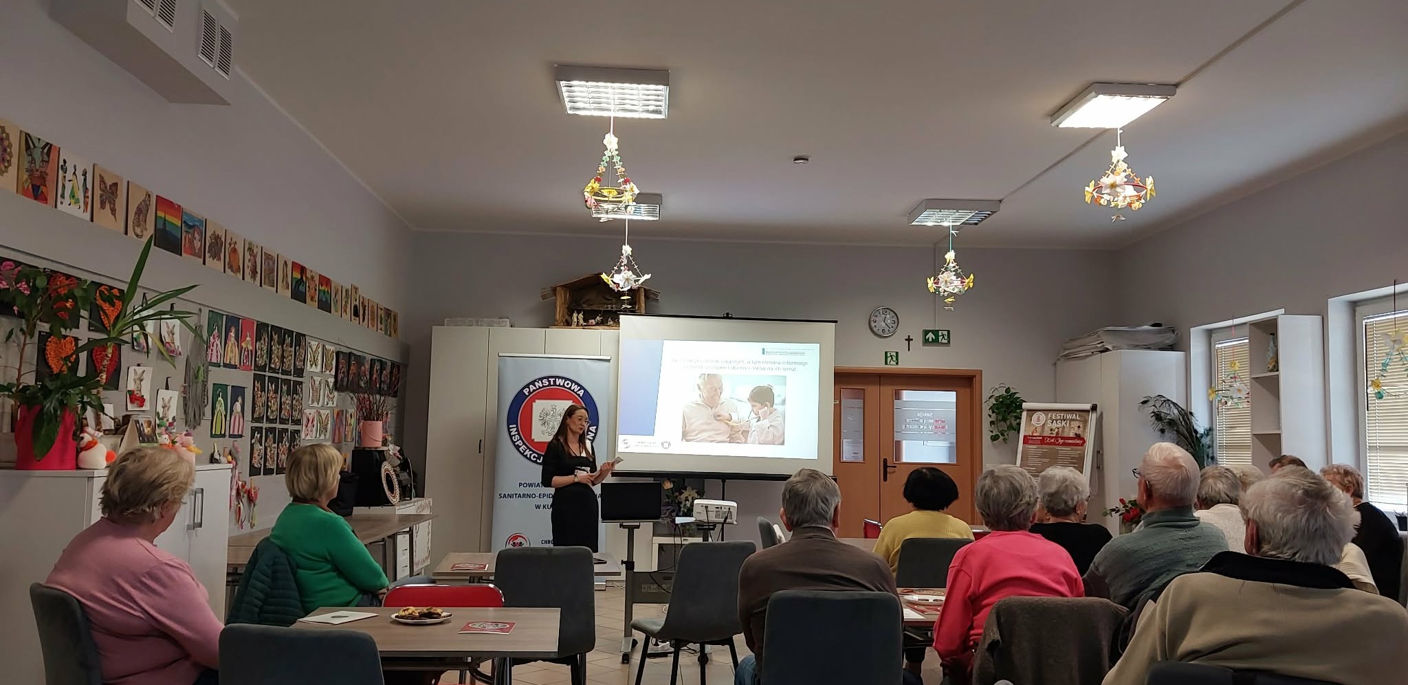 W dniu 09.04.2026 r. ramach Dni Otwartych Państwowej Inspekcji Sanitarnej odbyło się spotkanie w Centrum Seniora w Kutnie, podczas którego przedstawiciele Powiatowej Stacji Sanitarno-Epidemiologicznej w Kutnie przeprowadzili cykl wykładów dla Seniorów tj.: