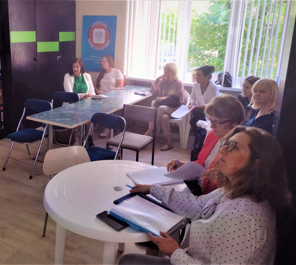 Dnia 23.05.2023 r. w siedzibie Powiatowej Stacji Sanitarno – Epidemiologicznej w Kutnie odbyło się spotkanie z Dyrektorami Domów Pomocy Społecznej i osobami odpowiedzialnymi za planowanie i przygotowanie posiłków w domach pomocy społecznej powiatu kutnowskiego z Państwowym Powiatowym Inspektorem Sanitarnym w Kutnie i pracownikami Oddziału Bezpieczeństwa Żywności i Żywienia. Spotkanie poświęcone było zasadom racjonalnego żywienia. Przedstawiono sposoby układania codziennych jadłospisów, tak by spełniały one zalecenia w zakresie prawidłowego żywienia, a jednocześnie były bezpieczne dla zdrowia. Omówiono normy żywienia, określające ilości dostarczanych składników odżywczych dla danej grupy ludności, tabele zamian produktów spożywczych, sposób ich przygotowania, obróbkę termiczną, w celu dostarczenia posiłków zdrowych, bezpiecznych i urozmaiconych.