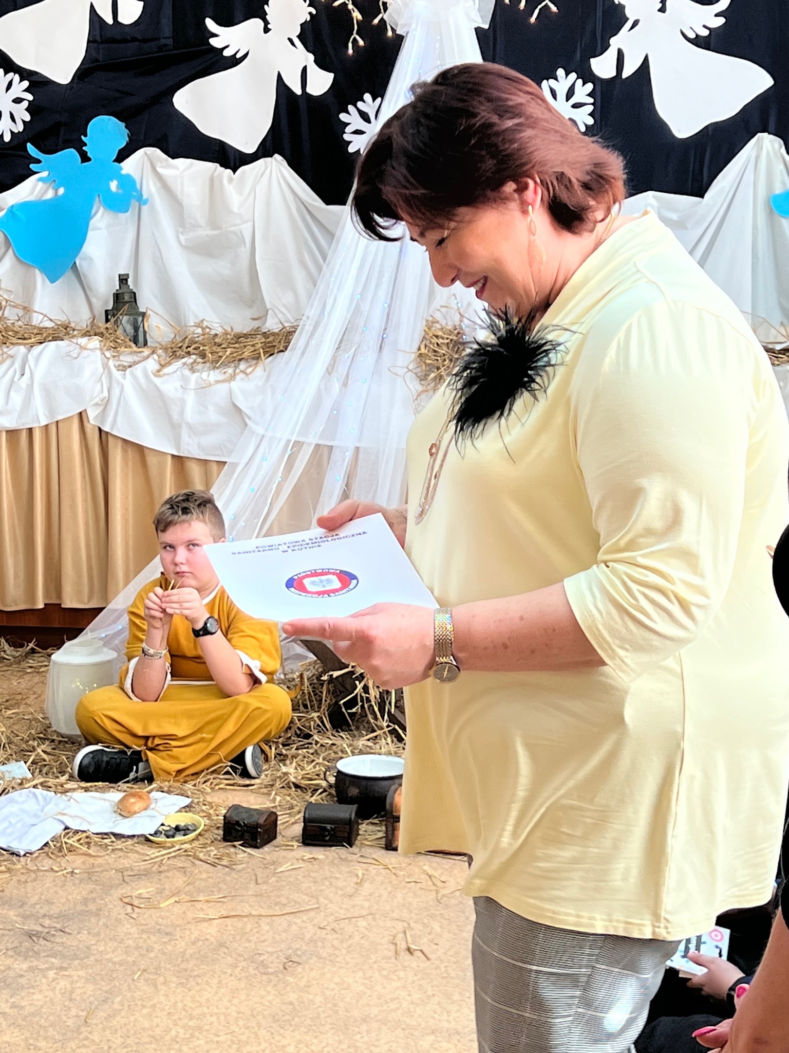 Dnia 03.01.2023 r. w Szkole Podstawowej im. Bohaterów Walk nad Bzurą we Wroczynach, odbyło się uroczyste rozstrzygnięcie konkursu graficznego ph.: „Żyj kreatywnie – bez uzależnień”. Wójt Gminy Kutno Justyna Jasińska wręczyła nagrody laureatom konkursu organizowanym przez Gminny Ośrodek Pomocy Społecznej we współpracy z Powiatową Stacją Sanitarno – Epidemiologiczną w Kutnie. Tematem konkursu było stworzenie własnego autorstwa projektu graficznego w formie elektronicznej. Prace konkursowe musiały nawiązywać do konsekwencji spożywania alkoholu, palenia tytoniu oraz używania substancji psychoaktywnych waz z promowaniem życia wolnego od uzależnień. Nagrodzeni otrzymali karty podarunkowe do Empiku.