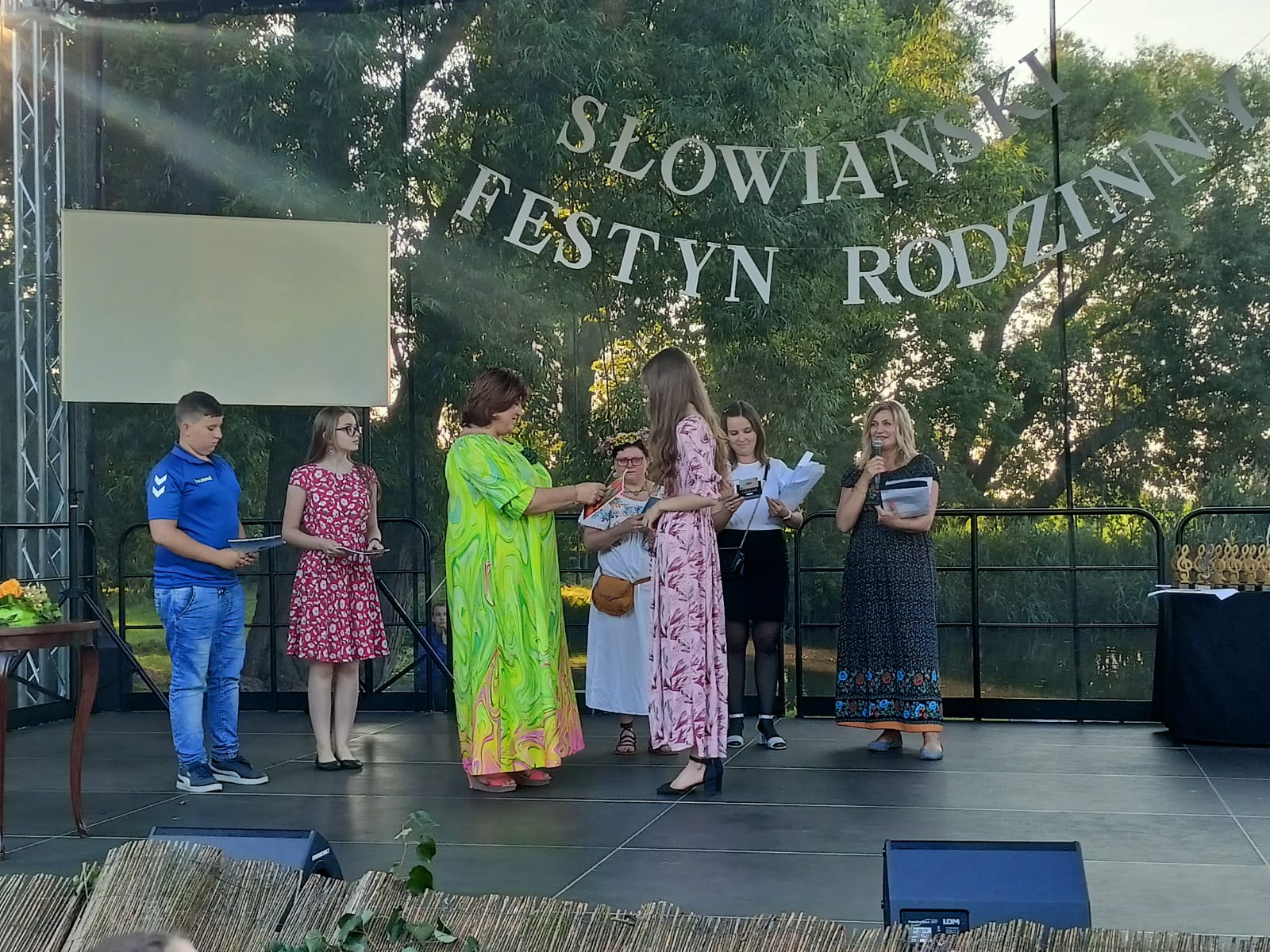 Uroczyste wręczenie nagród podczas Rodzinnego Festynu Słowiańskiego w Leszczynku