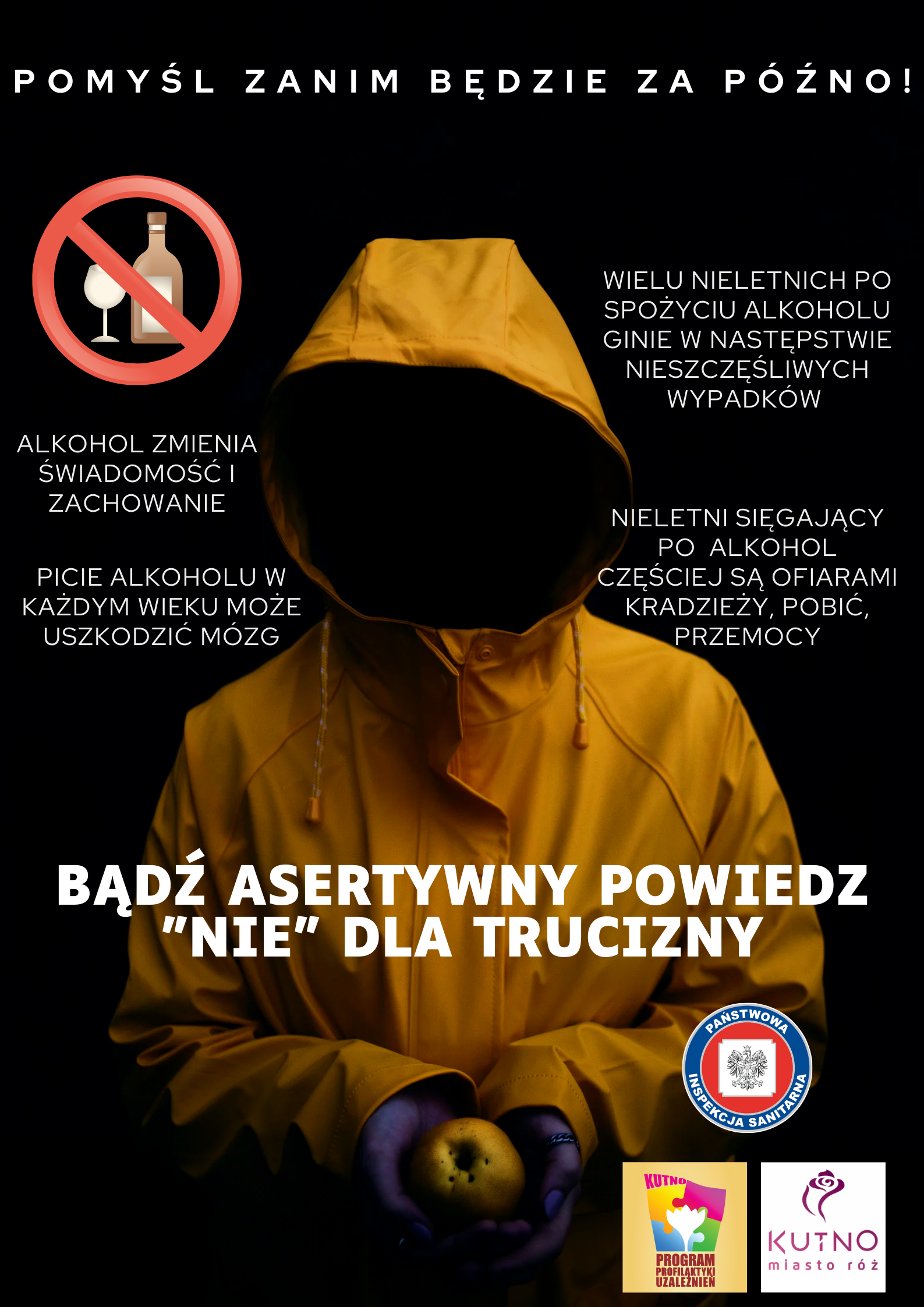 Materiały profilaktyczne (ulotki) zostały ufundowane przez Prezydenta Miasta Kutno, ze środków Miejskiego Programu Profilaktyki i Rozwiązywania Problemów Alkoholowych oraz Przeciwdziałania Narkomanii.
