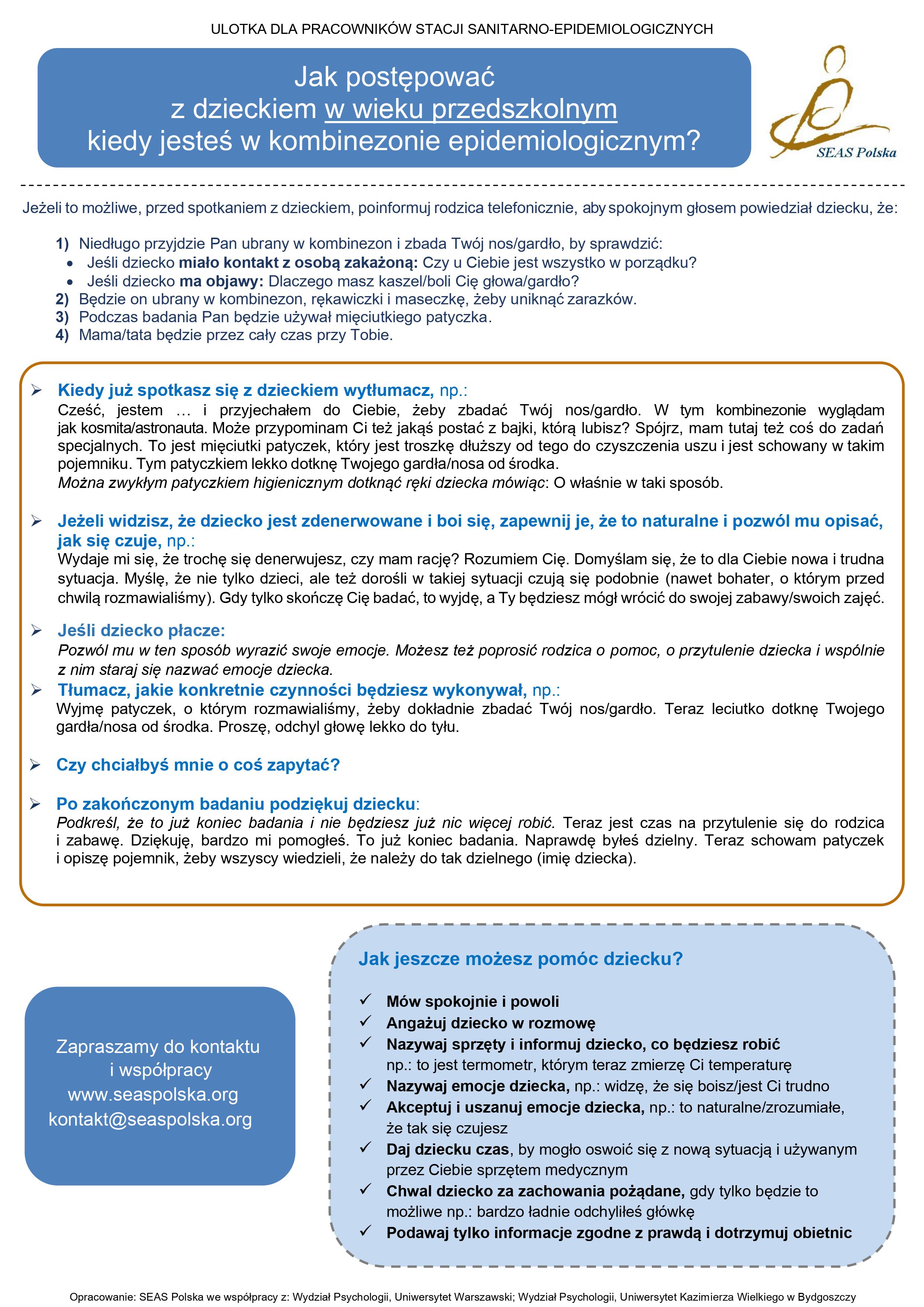 Jak uspokoić dziecko w wieku przedszkolnym kiedy jeste w kombinezonie epidemiologicznym?SEASPolska_Ulotka_Sanepid_Jak_postepowac_z_dzieckiem_wiek_przedszkolny.jpg 1.02MB Jak postępować z dzieckiem w wieku wczesnoszkolnym (7-10 lat) kiedy jeste w kombinezonie epidemiologicznym