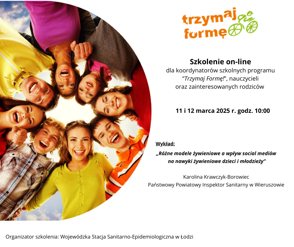 Państwowy Powiatowy Inspektor Sanitarny w Łasku informuje, że Wojewódzka Stacja Sanitarno-Epidemiologiczna w Łodzi organizuje szkolenie on-line dla szkolnych koordynatorów programu „Trzymaj Formę!”, nauczycieli i zainteresowanych rodziców.