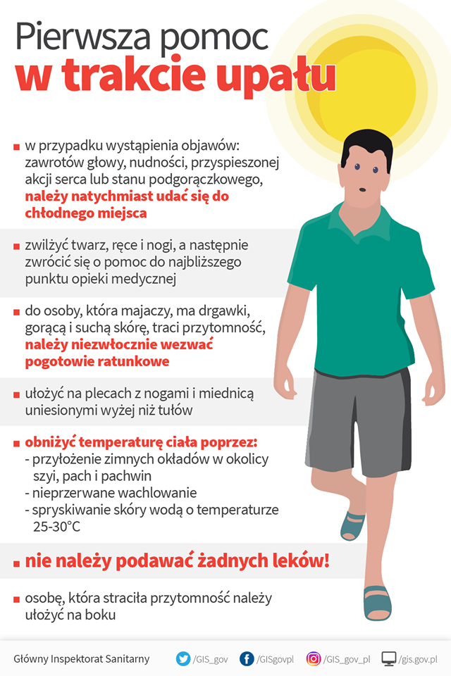 - Obserwuj prognozy pogody. Pamiętaj żeby dostosować swój ubiór, ale też planowane aktywności do aktualnej pogody. Ograniczaj czas spędzony na pełnym słońcu, stosuj filtry ochronne i okulary przeciwsłoneczne. Pamiętaj o piciu odpowiedniej ilości wody.