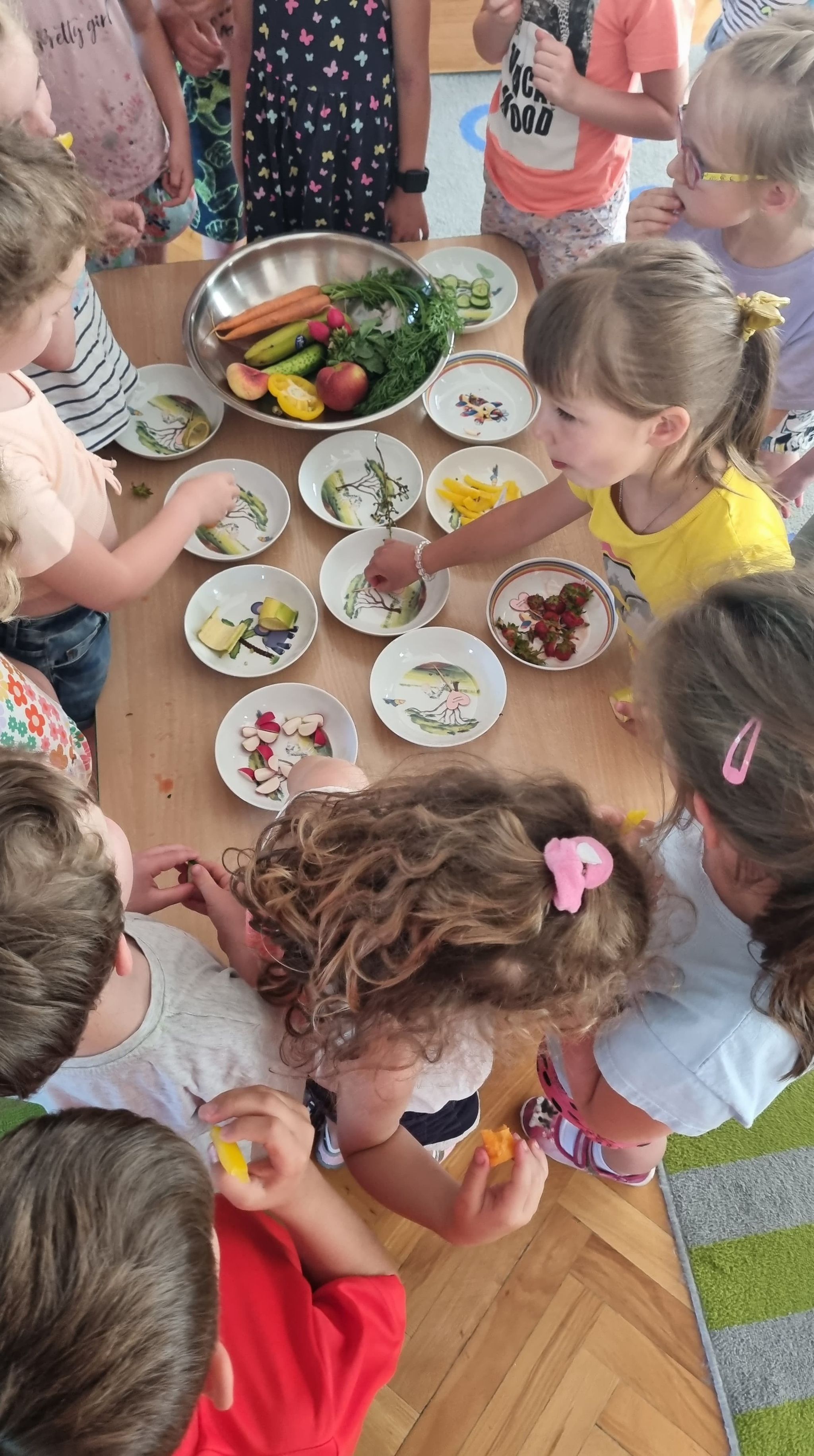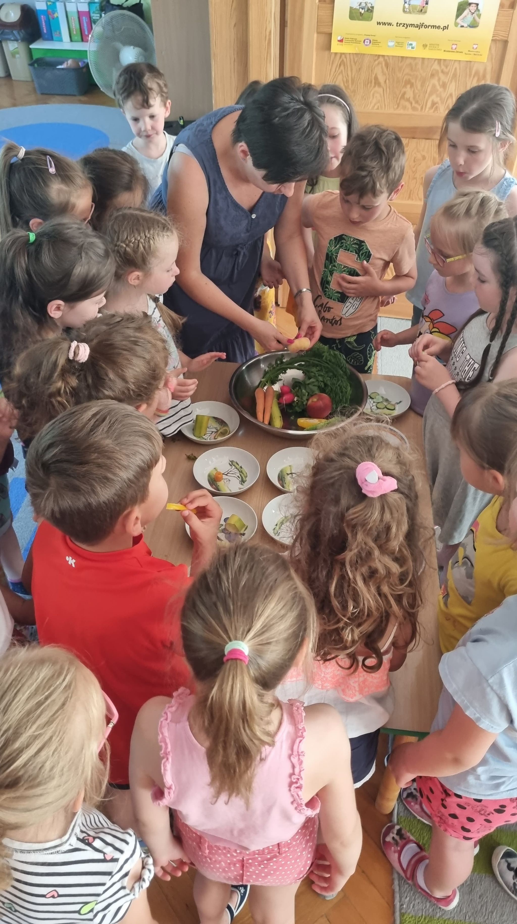 Wspólnie znaleźliśmy odpowiedź na pytanie co to są witaminy oraz dlaczego należy jeść różne warzywa i owoce – dzieci mogły wybrać swoje ulubione spośród zaproponowanych na poczęstunku.