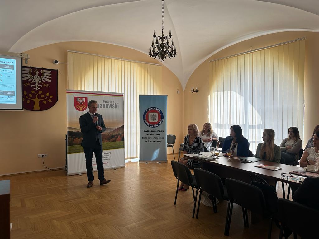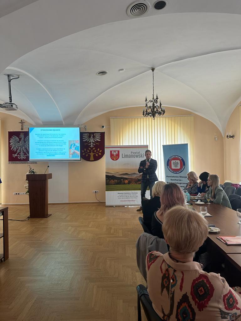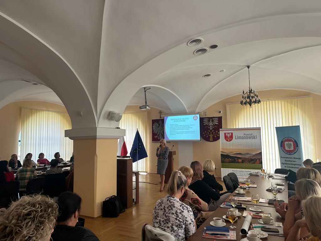 Powiatowa Stacja Sanitarno-Epidemiologicznej w Limanowej w dniu 5 października 2023 r. zorganizowała szkolenie z zakresu szczepień ochronnych dla pielęgniarek podmiotów leczniczych z terenu powiatu limanowskiego, które odbyło się w Starostwie Powiatowym w Limanowej.