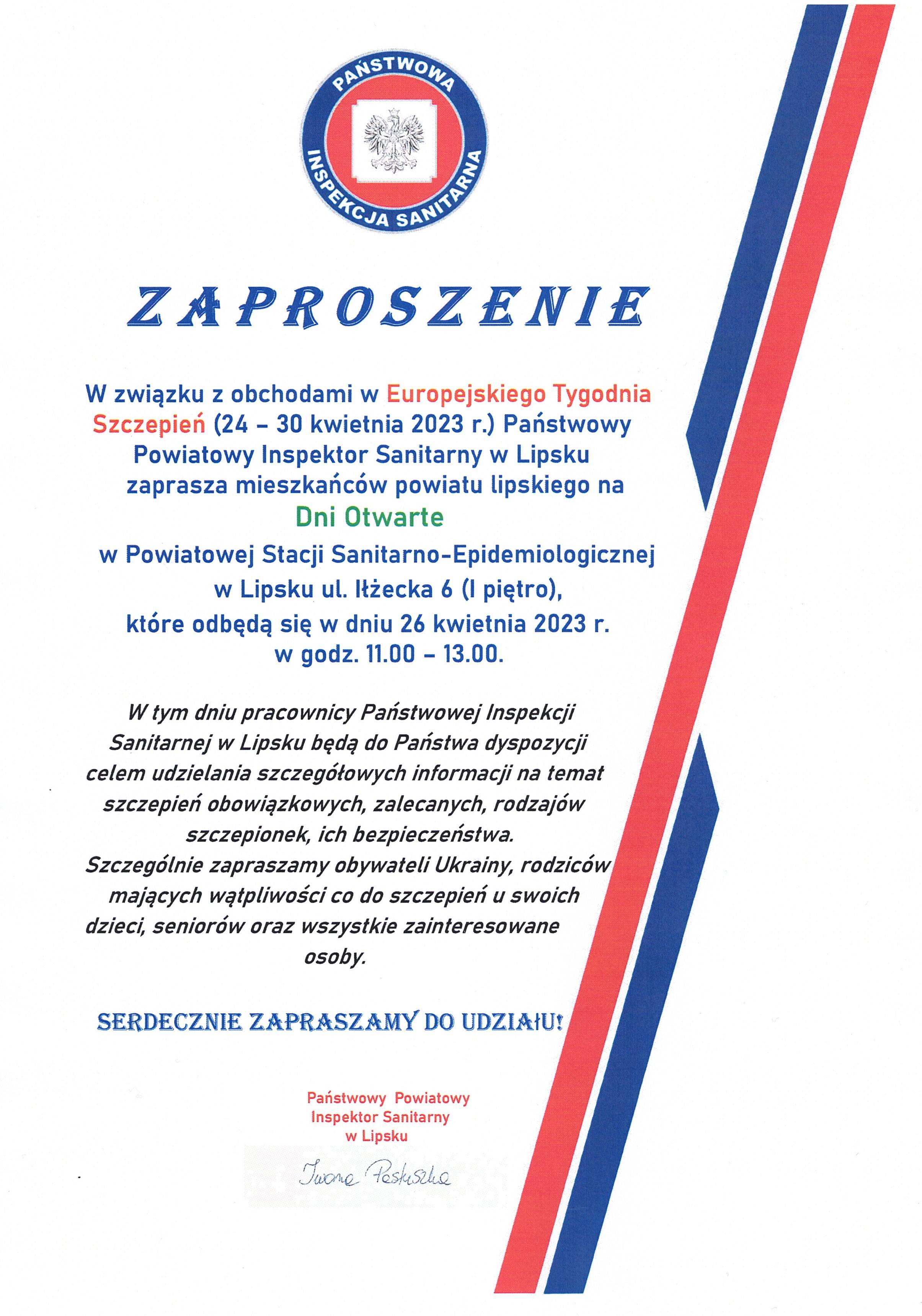 Narodowy Instytut Zdrowia Publicznego Państwowy Zakład Higieny 25 kwietnia 2023 r. z okazji Europejskiego Tygodnia Szczepień organizuje konferencję pt. Szczepienia ochronne gwarancją na lepszą jakość życia. Do udziału w konferencji zaprasza, oprócz pracowników Państwowej Inspekcji Sanitarnej, pracowników ochrony zdrowia uczestniczących w procesie kwalifikacji do szczepień, a także wszystkich zainteresowanych szczepieniami.