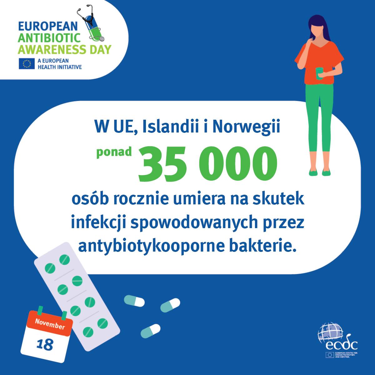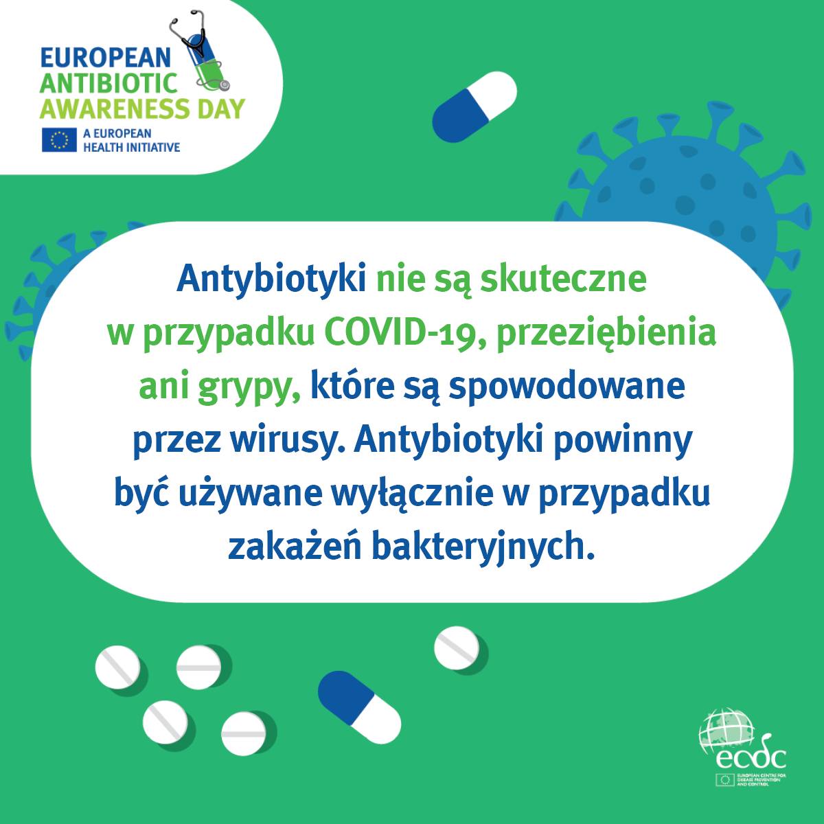W związku z obchodami "Europejskiego Dnia Wiedzy o Antybiotykach" oraz "Światowego Tygodnia Wiedzy o Antybiotykach", poniżej załączamy materiały edukacyjne dot. antybiotyków.