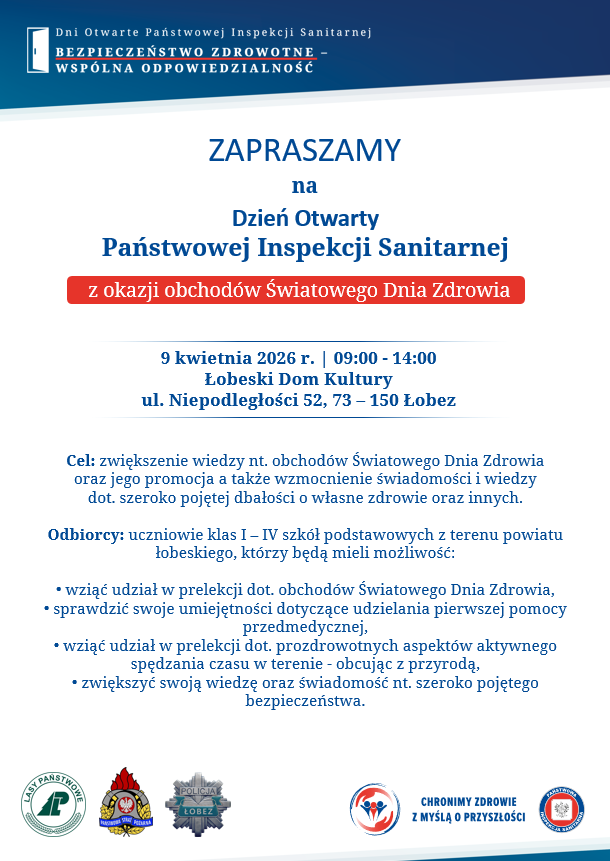 Celem zainicjowania prozdrowotnych postaw wśród dzieci, obchody zaplanowano na 9 kwietnia 2026 r. w Łobeskim Domu Kultury, ul. Niepodległości 52, 73 – 150 Łobez, podczas których klasy I – IV ze szkół podstawowych z terenu powiatu łobeskiego będą mogły uczestniczyć w cyklicznie organizowanych blokach profilaktycznych dot. zdrowego stylu życia.