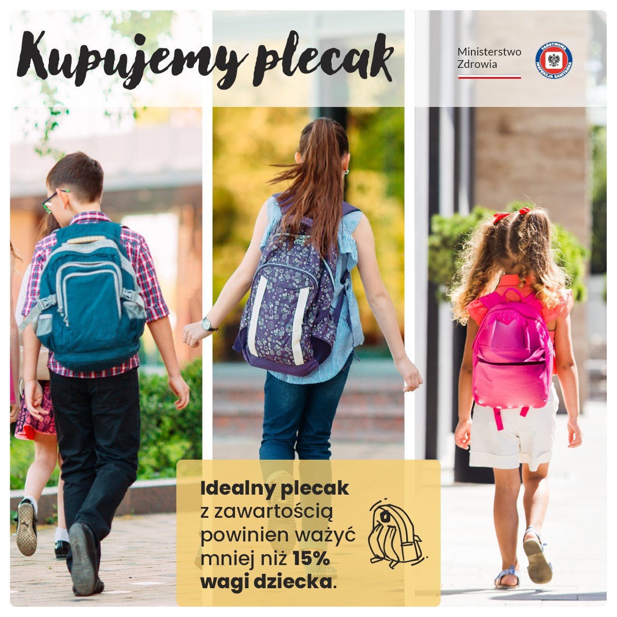 W ramach działań profilaktycznych związanych z dbałością o prawidłowy rozwój i zdrowie dzieci w wieku szkolnym, przypominamy, aby zwrócić szczególną uwagę na zjawisko noszenia zbyt ciężkich plecaków szkolnych.