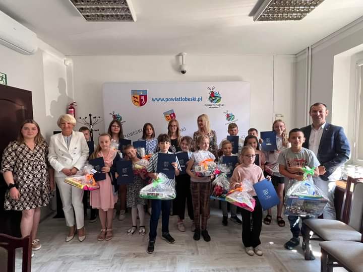 Uroczyste wręczenie nagród dla uczestników konkursu plastycznego na plakat antynikotynowy w ramach "Światowego Dnia Bez Tytoniu" dla szkół podstawowych odbyło się 19 czerwca 2023 r. o godz. 10:00 w siedzibie Starostwa Powiatowego w Łobzie.
