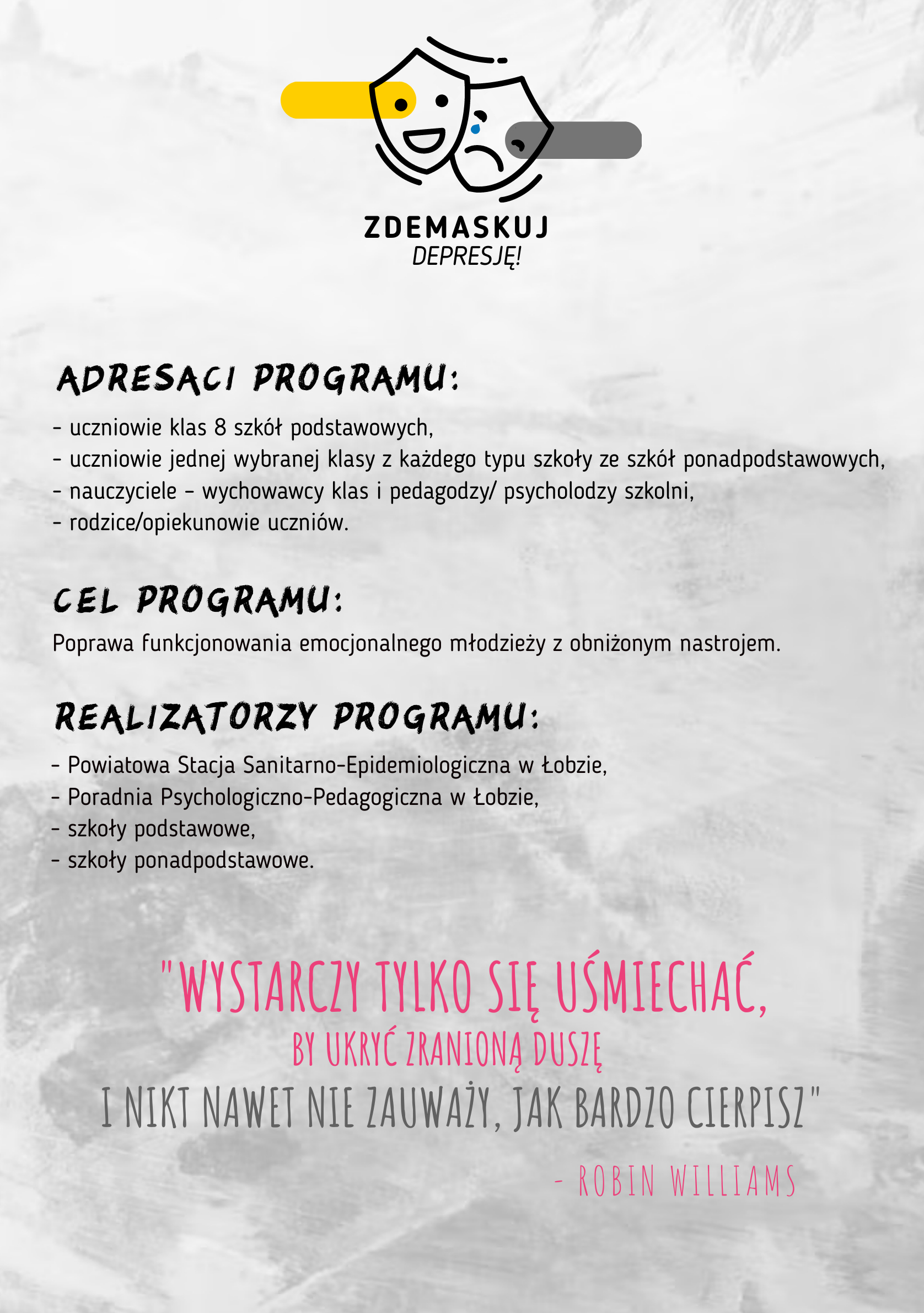 Powiatowy Program Zwalczania Depresji Wśród Młodzieży pt. „Zdemaskuj depresję!”