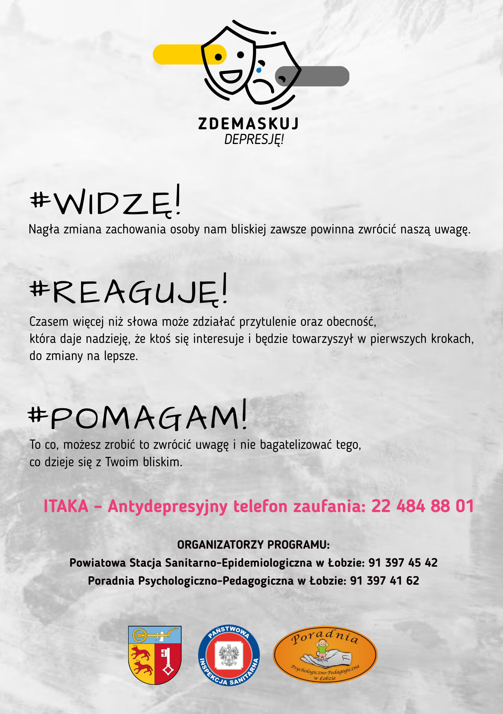 Powiatowy Program Zwalczania Depresji Wśród Młodzieży pt. „Zdemaskuj depresję!” realizowany we współpracy z Poradnią Psychologiczno – Pedagogiczną w Łobzie, pod patronatem Starosty Łobeskiego - EDYCJA III, ROK SZKOLNY 2025/2026.