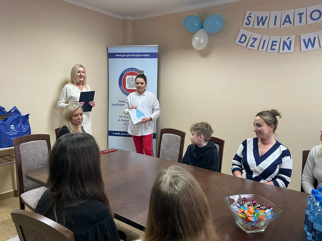 Uroczyste wręczenie nagród dla laureatów konkursu literackiego na fraszkę pt. "Fraszka o wodzie, która służy zdrowiu i przyrodzie" (etap powiatowy) odbyło się 24 marca 2023 r. o godz. 12:00 w siedzibie Powiatowej Stacji Sanitarno - Epidemiologicznej w Łobzie.