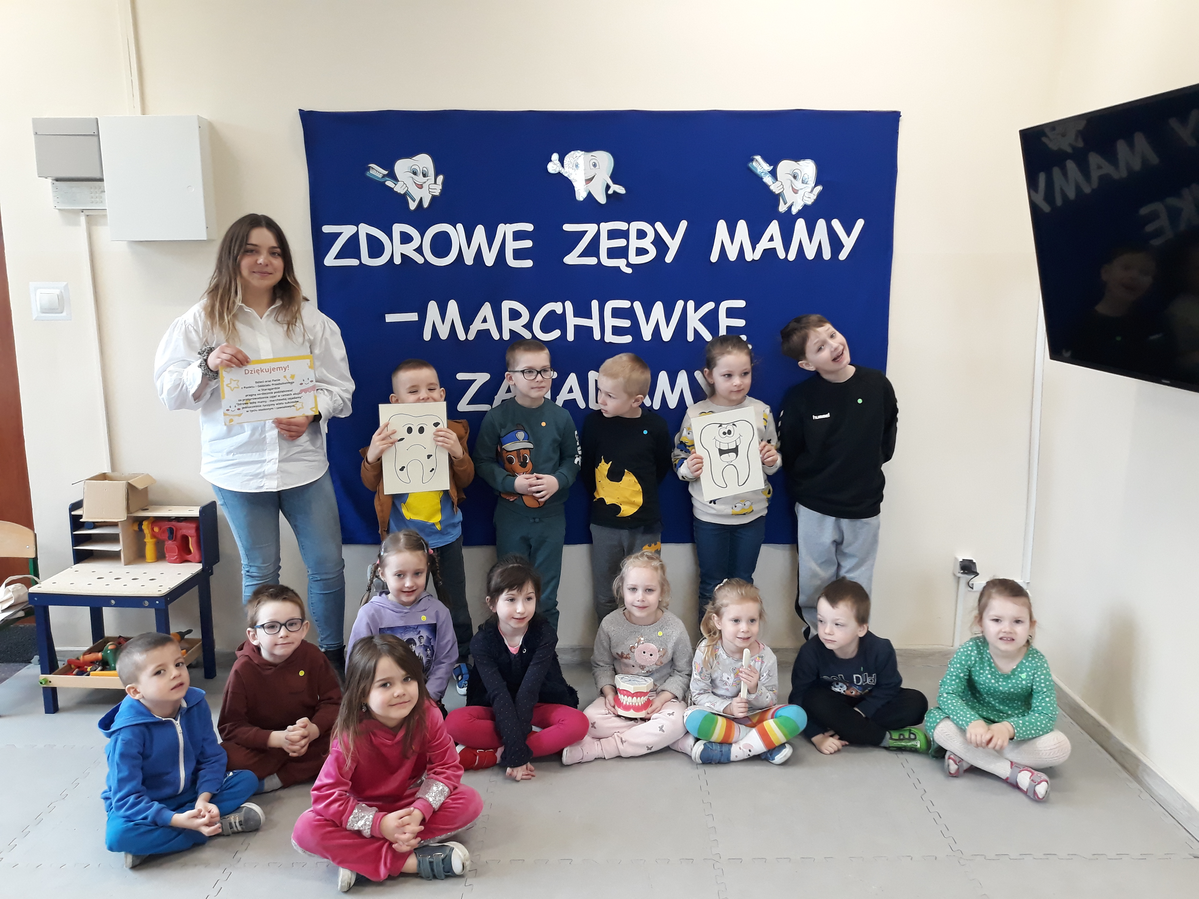 Zajęcia miały na celu przedstawienie zasad higieny jamy ustnej – tj. wykształcenie nawyku szczotkowania zębów od najmłodszych lat.