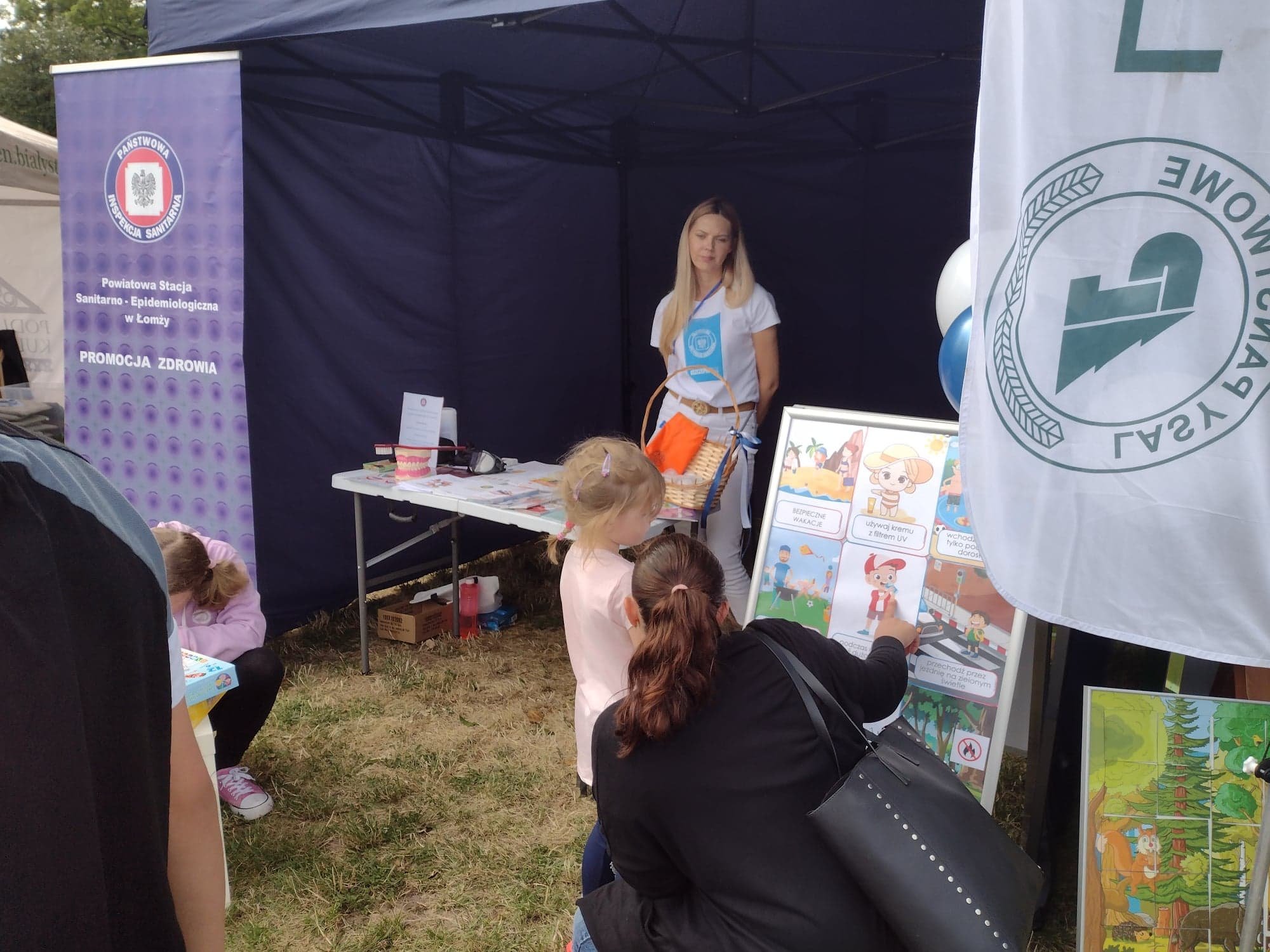 PSSE w Łomży przygotowała stoisko profilaktyczno – edukacyjne, na którym można było skorzystać z alkogogli, przeprowadzić pomiar natężenia tlenku węgla (CO) w wydychanym powietrzu przy użyciu smokerlyzera oraz otrzymać materiały oświatowo – zdrowotne. Najmłodsi uczestnicy pikniku przedstawiali technikę prawidłowej higieny jamy ustnej, rozwiązywali krzyżówki i zagadki dot. zdrowego stylu życia i bezpiecznych wakacji, za co otrzymywali drobne gadżety ufundowane przez Miasto Łomża.