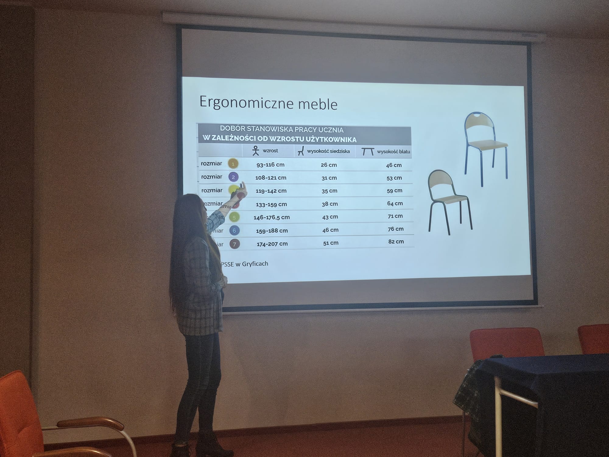 - zasady ergonomii mebli szkolnych i prawidłową pozycję przy biurku i komputerze,