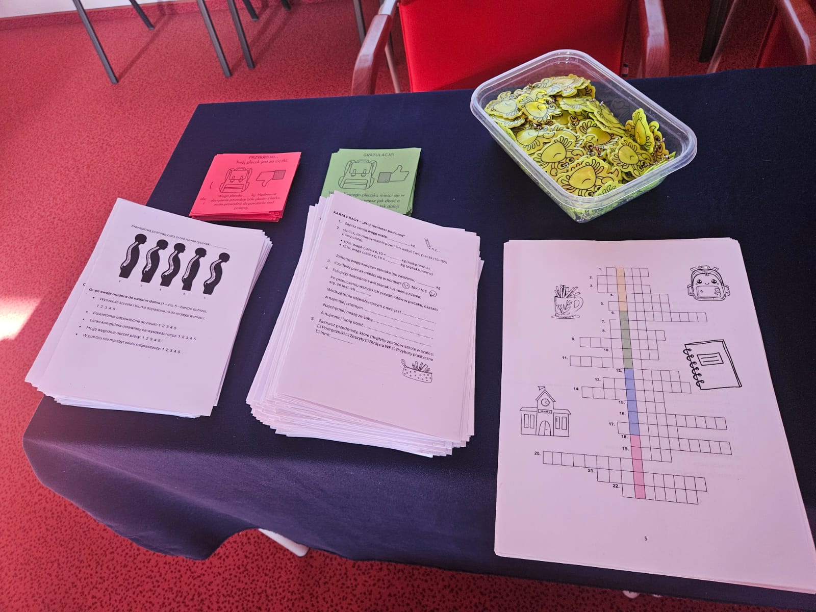 Podczas akcji pracownicy PSSE przeprowadzili również pogadanki edukacyjne dla uczniów, zwracając uwagę na kluczowe zagadnienia dotyczące ochrony zdrowia układu ruchu. Omówiono m.in.: