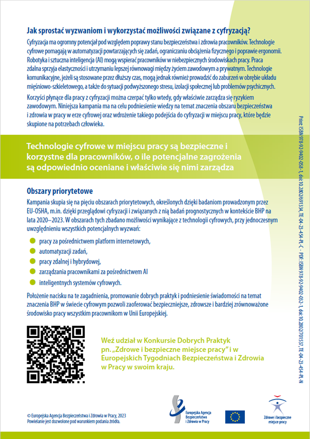 Położenie nacisku na te zagadnienia, promowanie dobrych praktyk i podniesienie świadomości na temat znaczenia BHP w świecie cyfrowym pozwoli zaoferować bezpieczniejsze, zdrowsze i bardziej zrównoważone środowisko pracy wszystkim pracownikom w Unii Europejskiej.